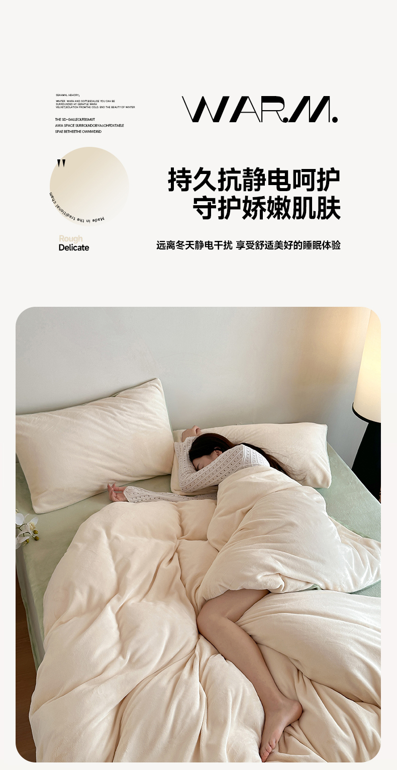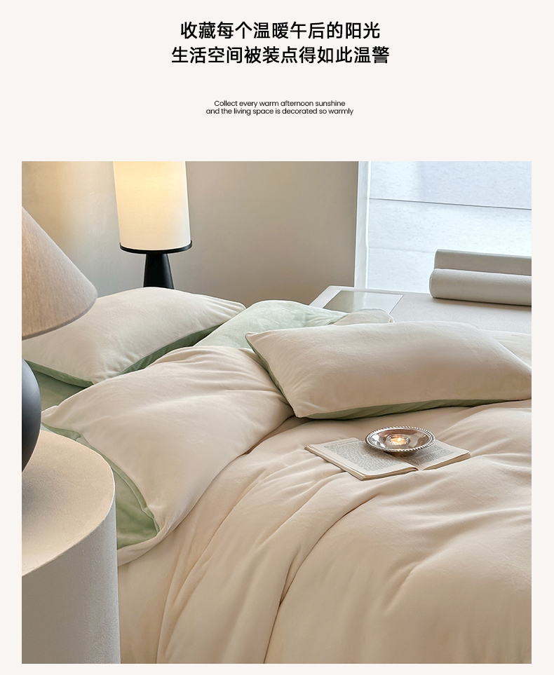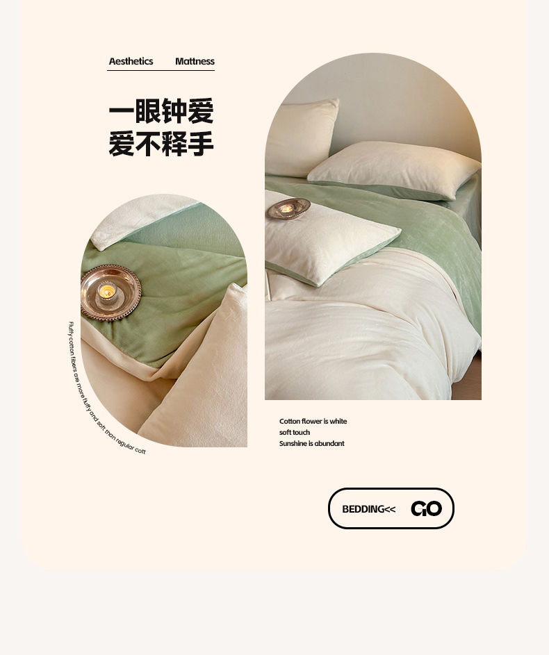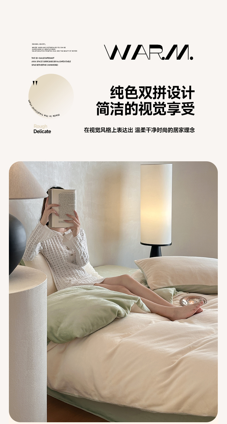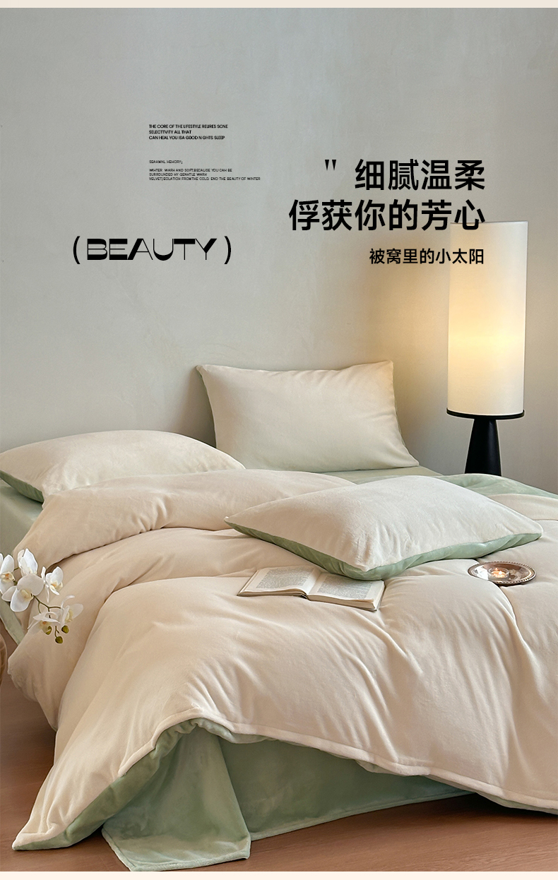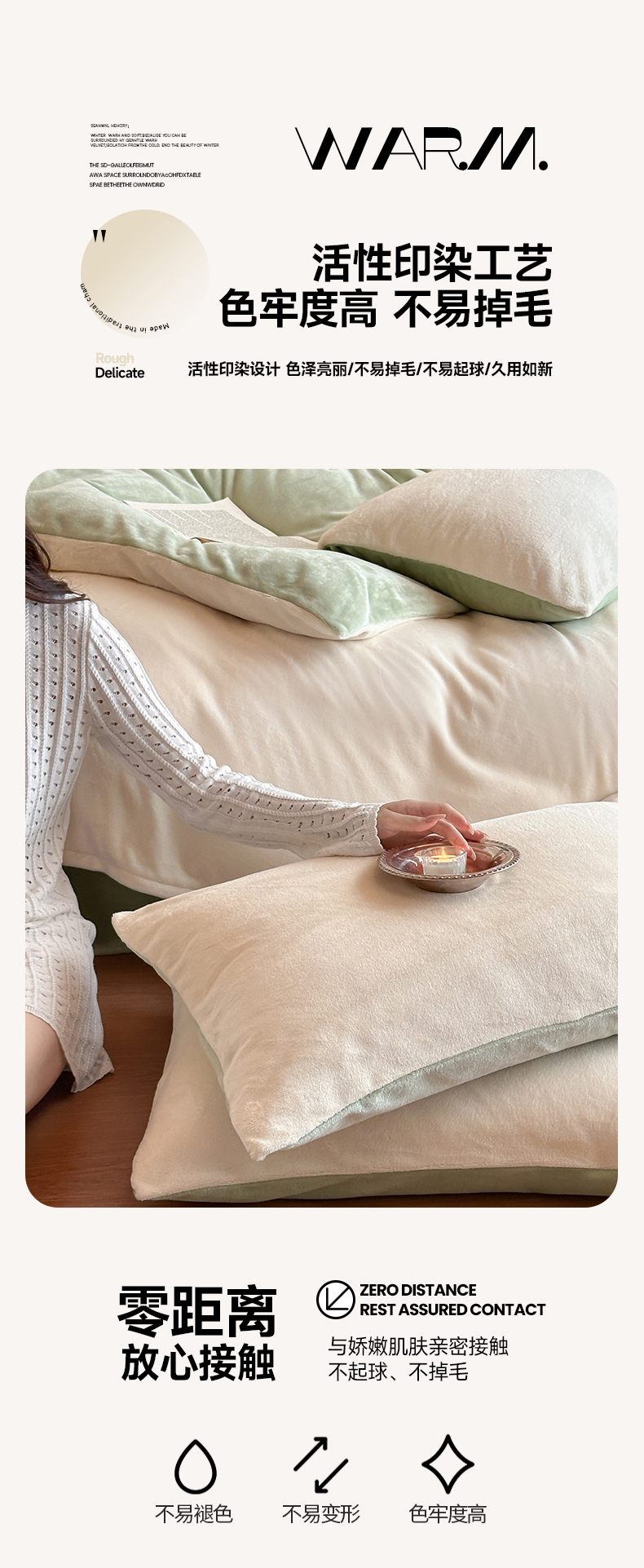 商品名称:寐眠 2024新款牛奶绒纯色双拼四件套 奶酪薄荷