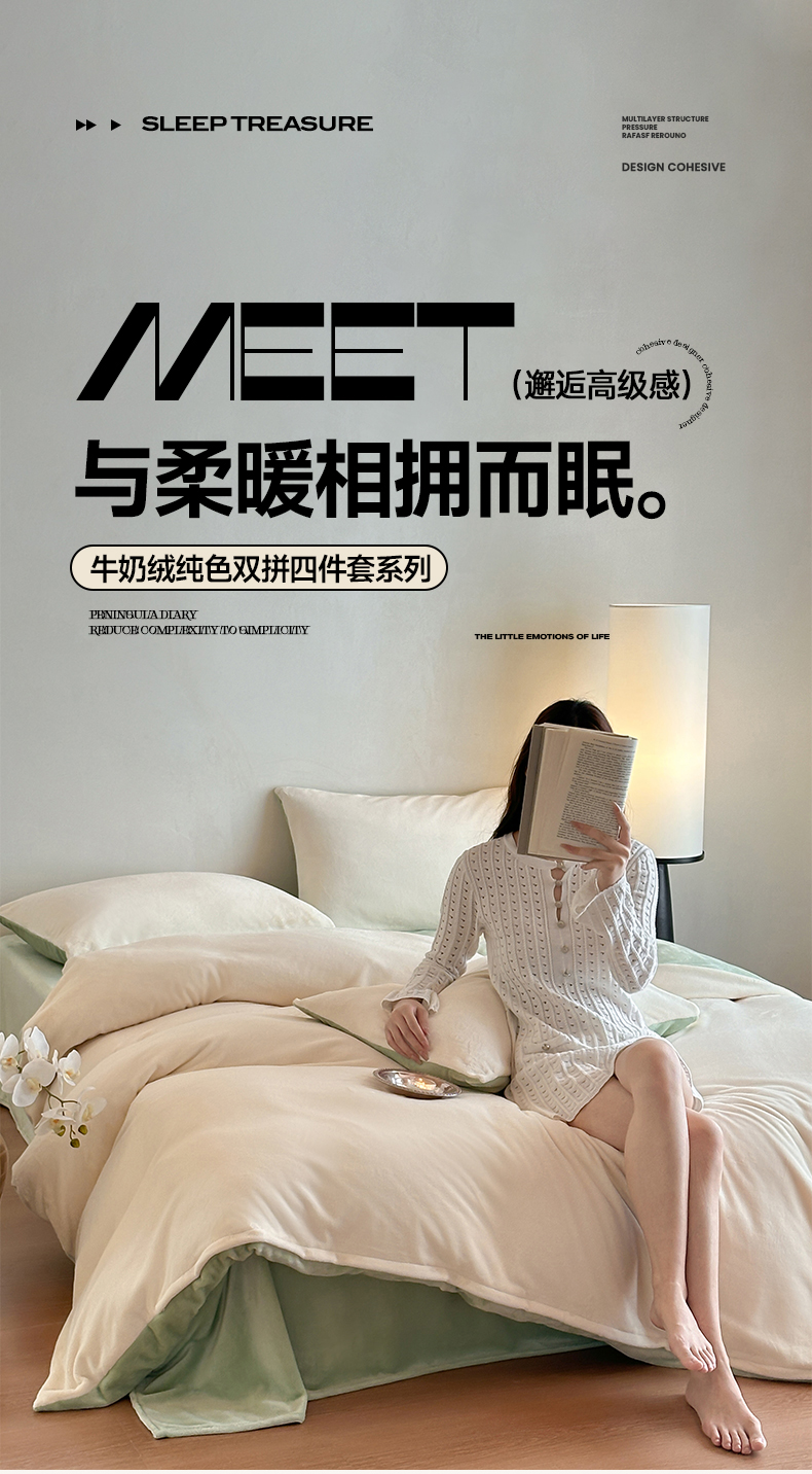 (总)寐眠 2025新款A类立体雕花牛奶绒四件套-系列三,绿澜绒致,暖绒粉梦,素绒雅调