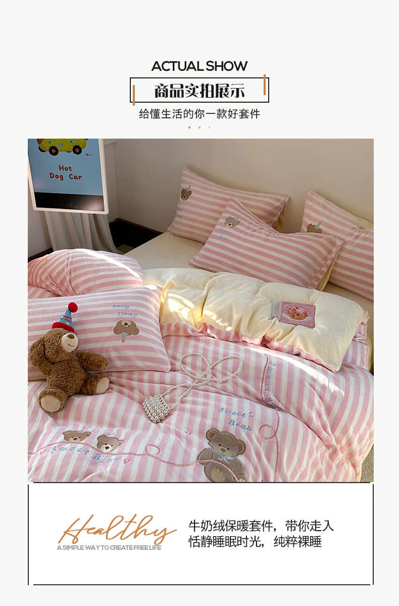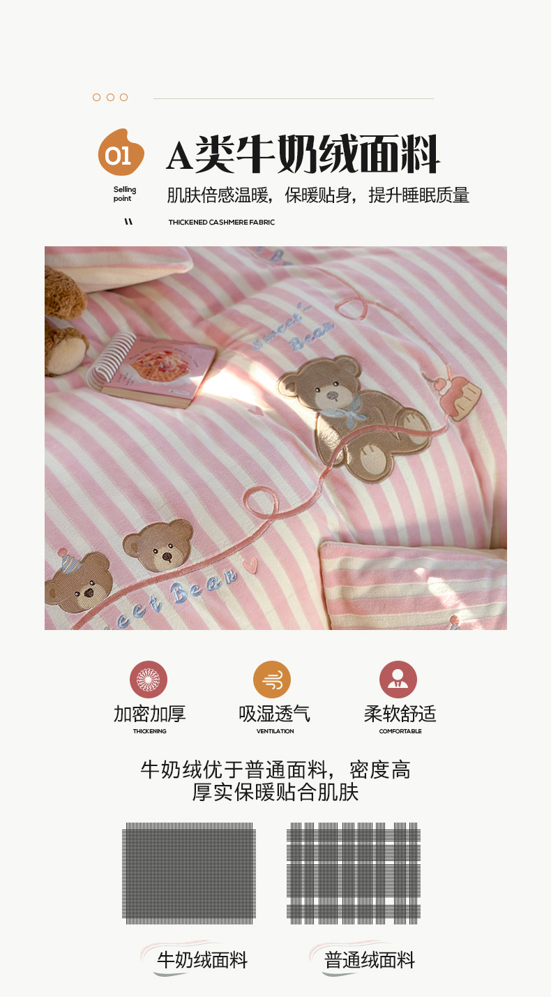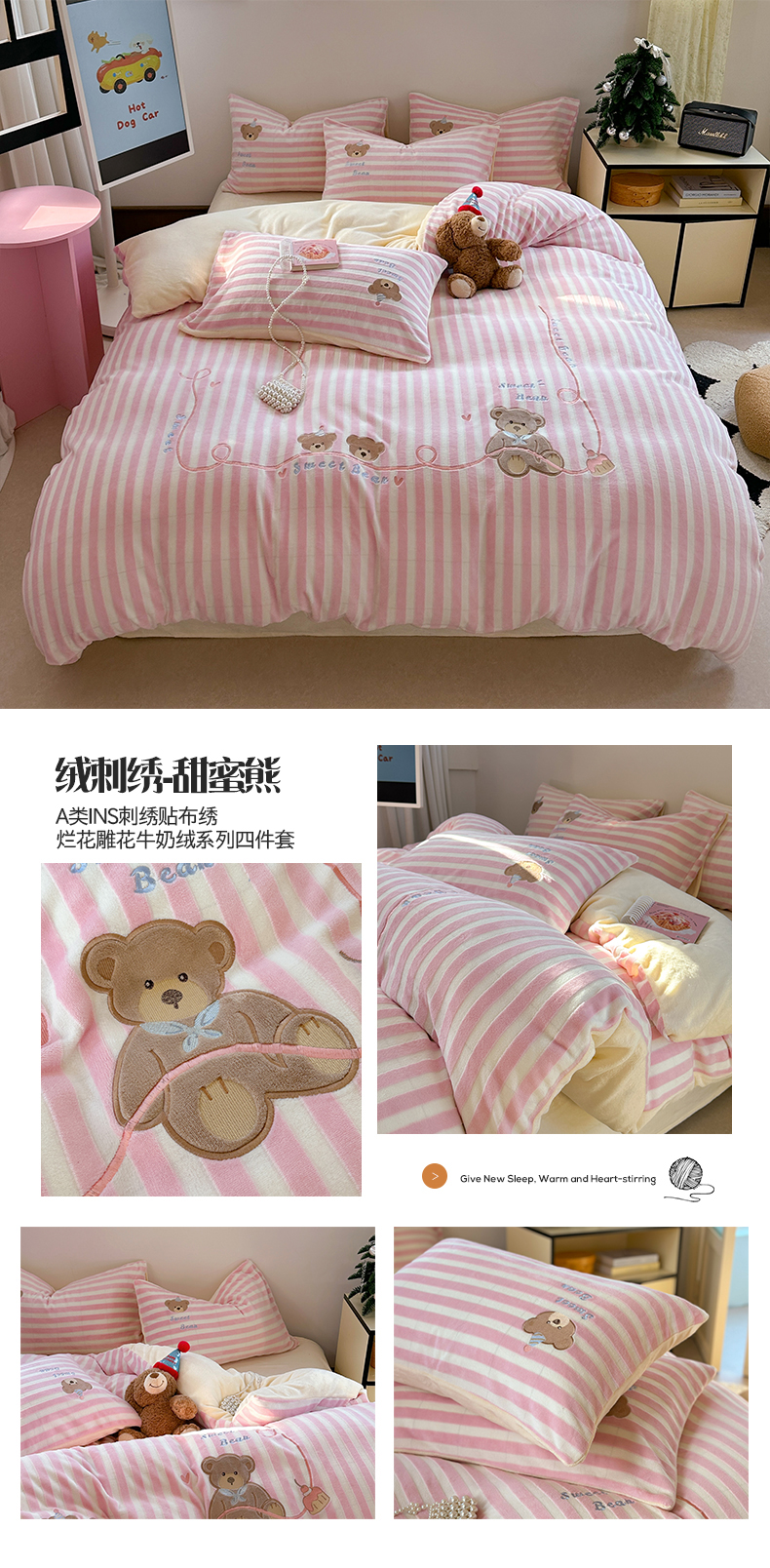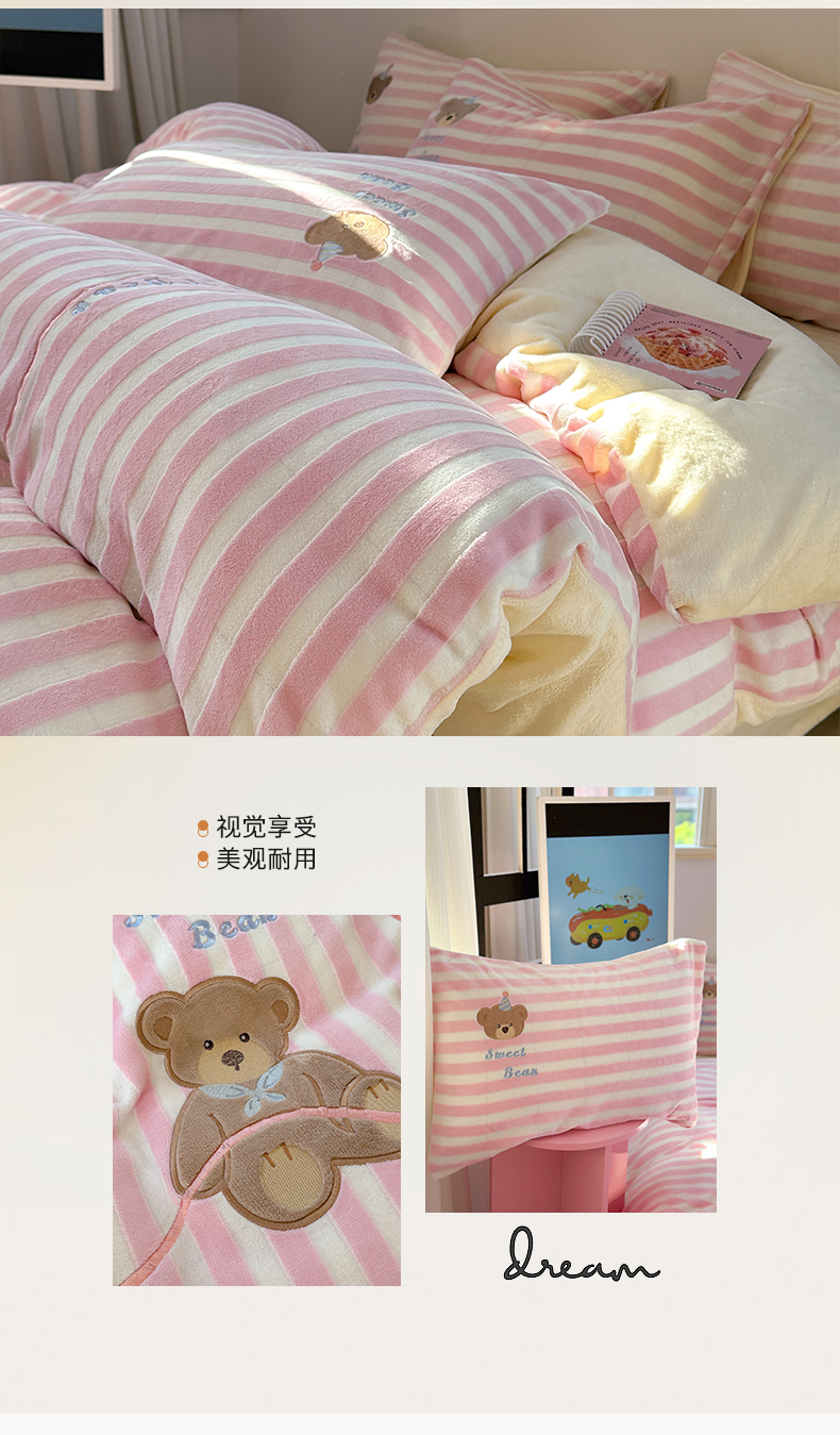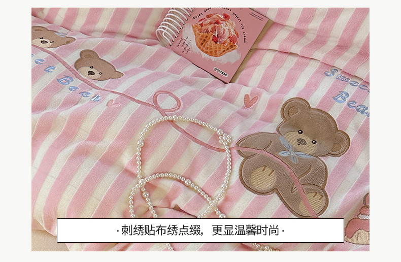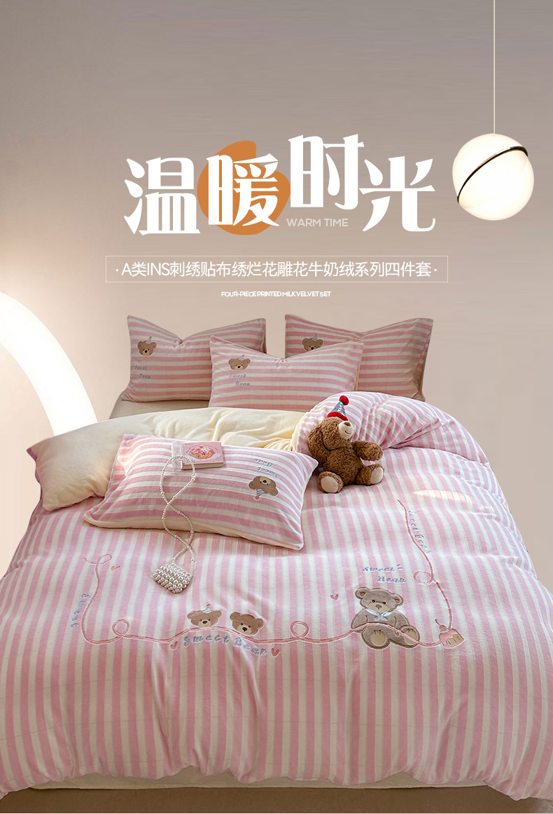 桃子家居 2024新款A类ins博主小红书刺绣贴布绣立体高级工艺烂花雕花牛奶绒系列四件套 绒刺绣-甜蜜熊