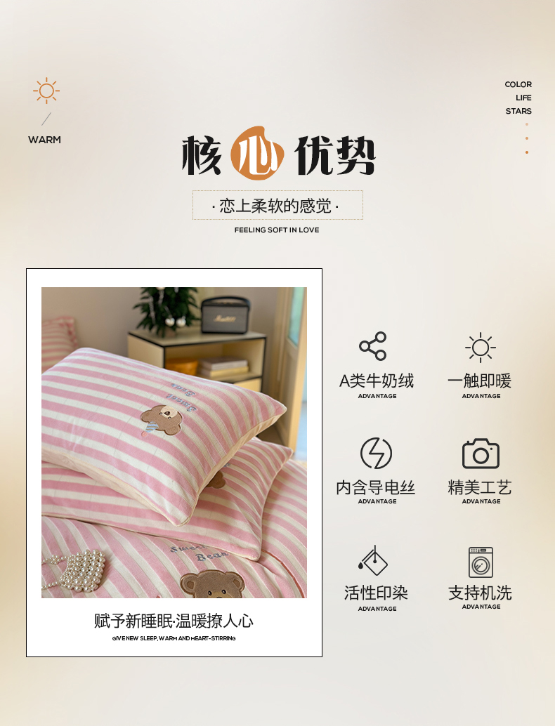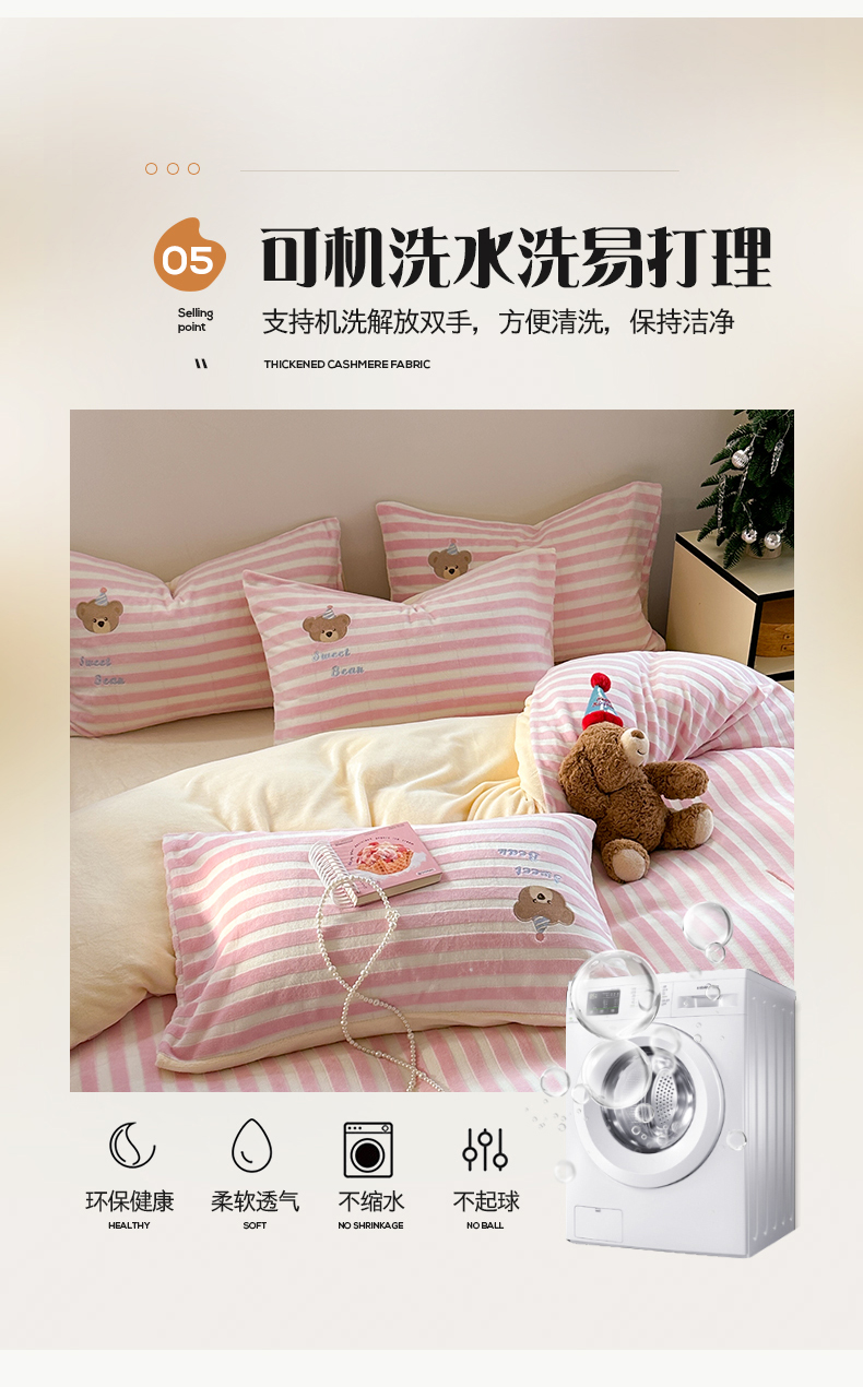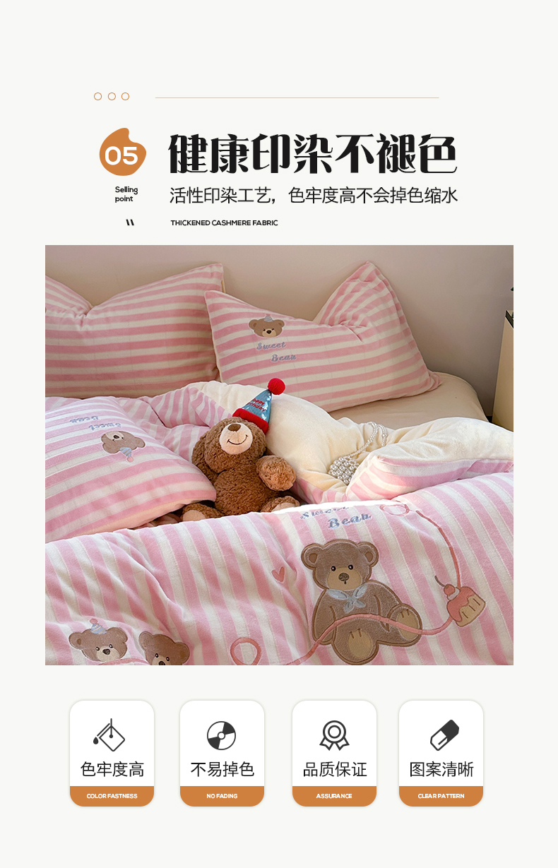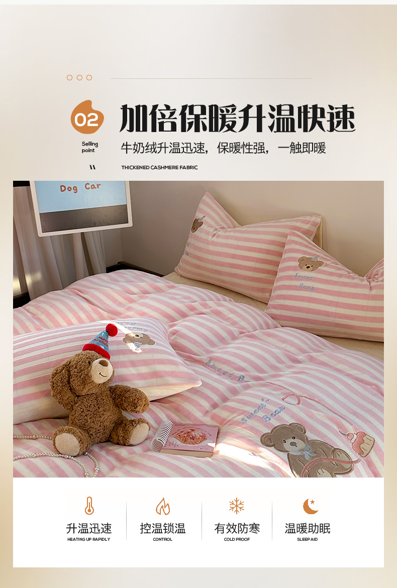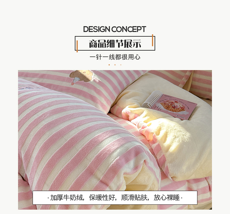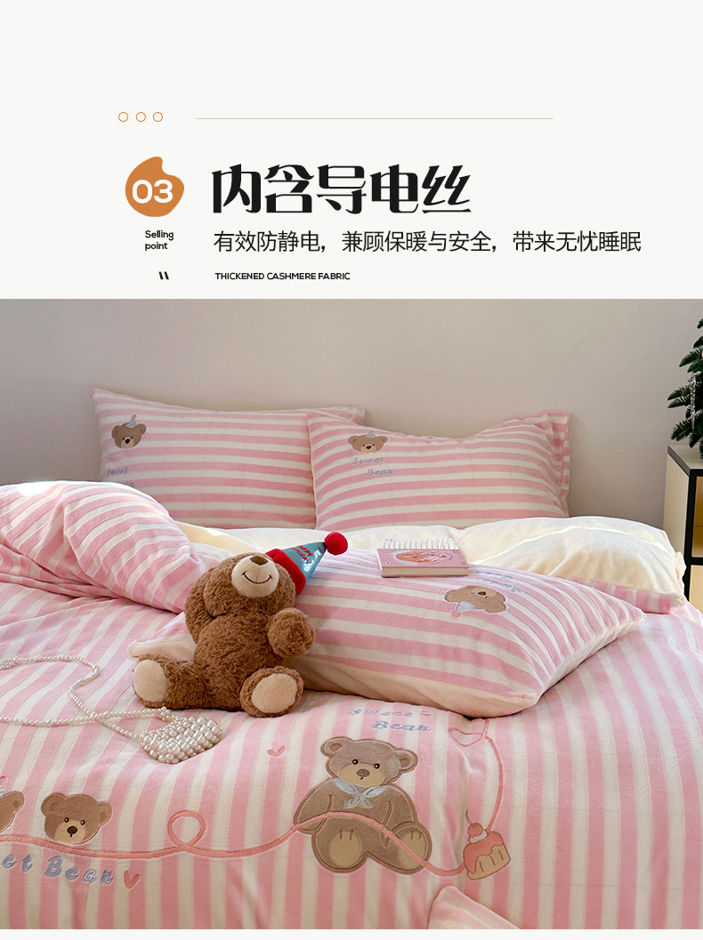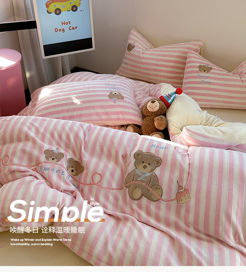 桃子家居 2024新款A类ins博主小红书刺绣贴布绣立体高级工艺烂花雕花牛奶绒系列四件套 绒刺绣-甜蜜熊