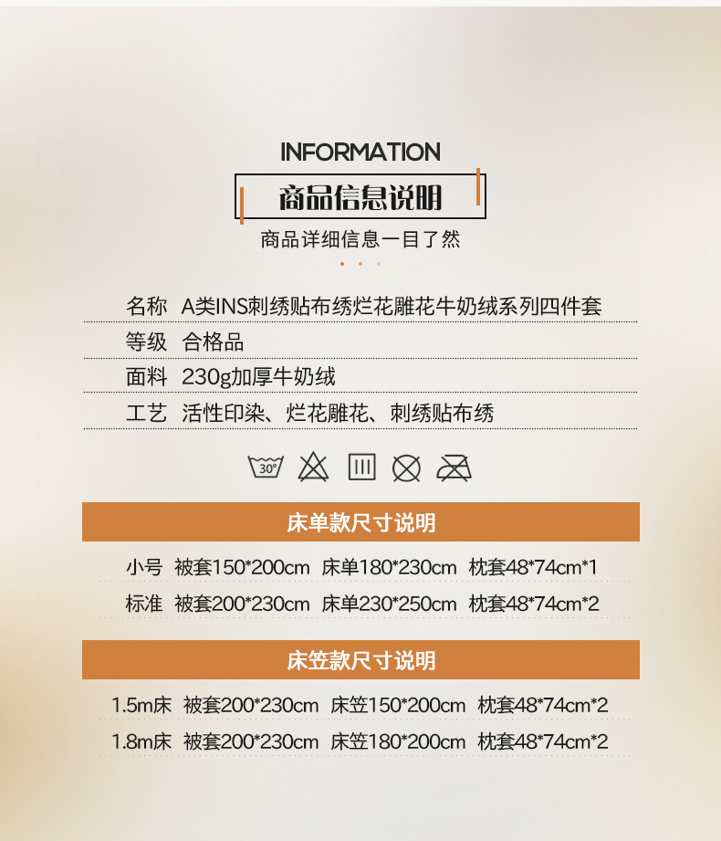 商品名称:桃子家居 2024新款A类ins博主小红书刺绣贴布绣立体高级工艺烂花雕花牛奶绒系列四件套 绒刺绣-甜蜜熊