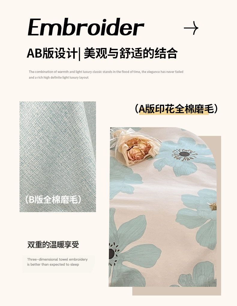 (总)新印象 2025新款全消光牛奶绒绣花活性印染四件套花织梦,花织梦-豆沙粉,花织梦-米柚橙,花织梦-清新蓝