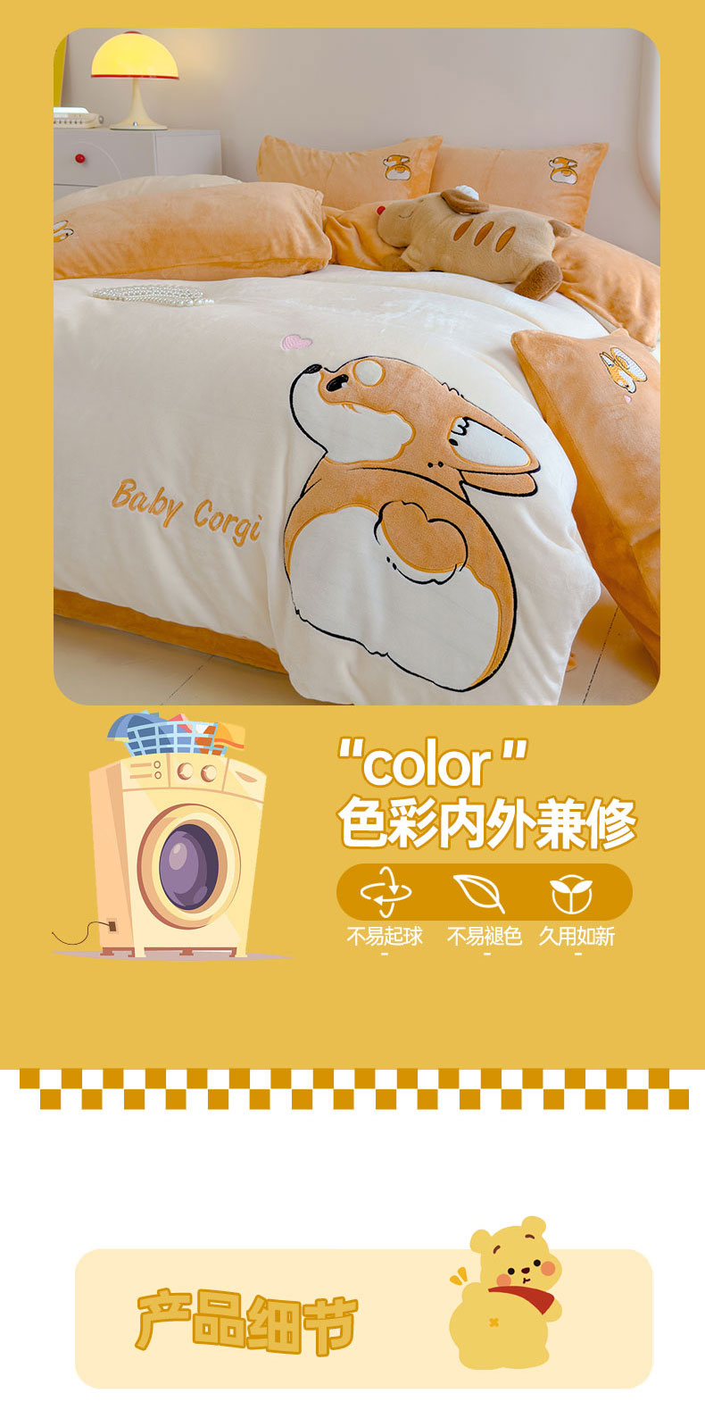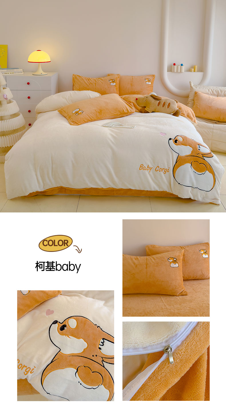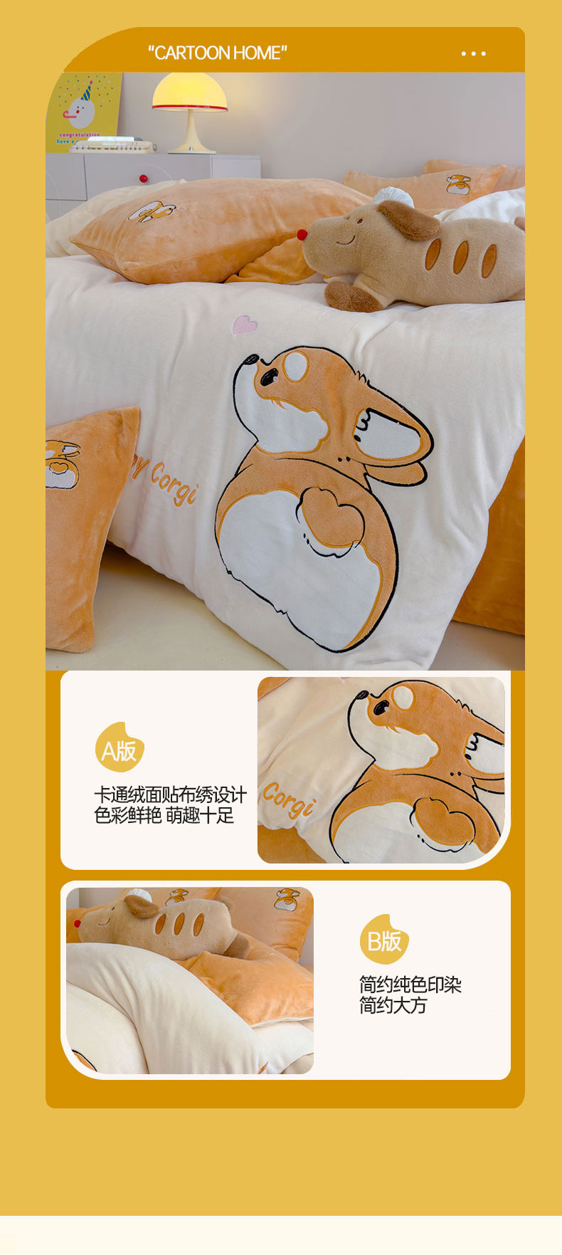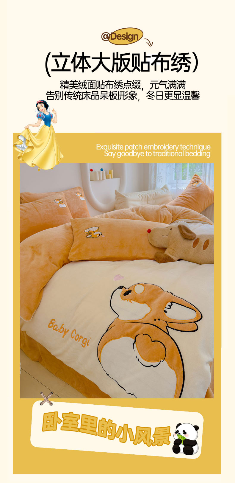 商品名称:灰鲸 2025新款牛奶绒大版贴布绣四件套 柯基baby