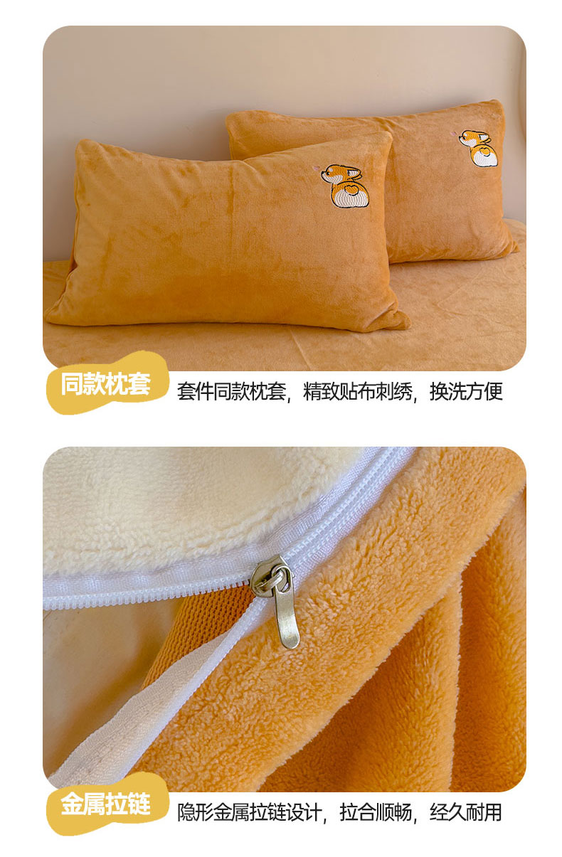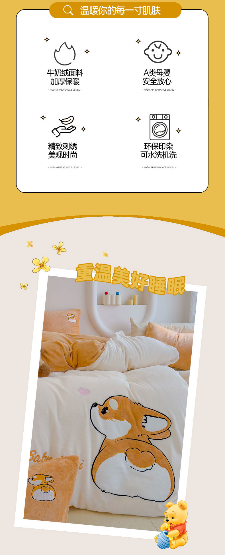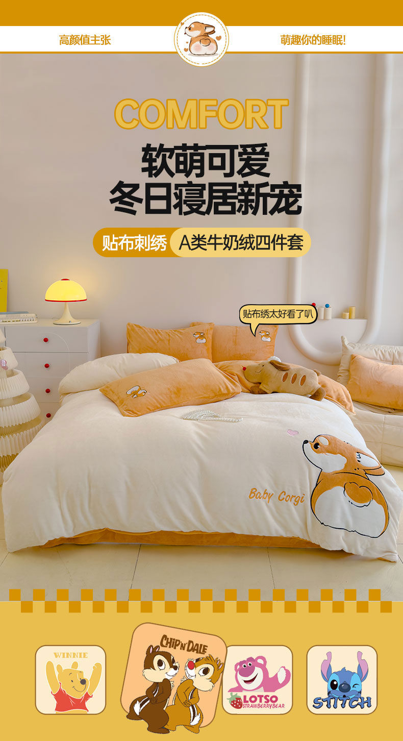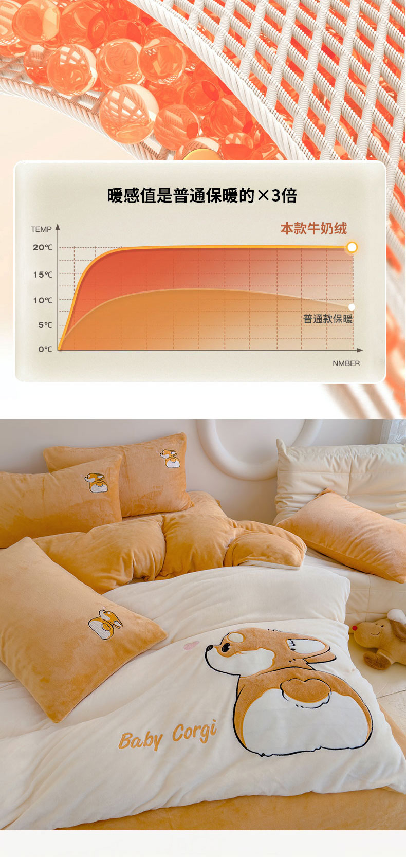 商品名称:灰鲸 2025新款牛奶绒大版贴布绣四件套 柯基baby