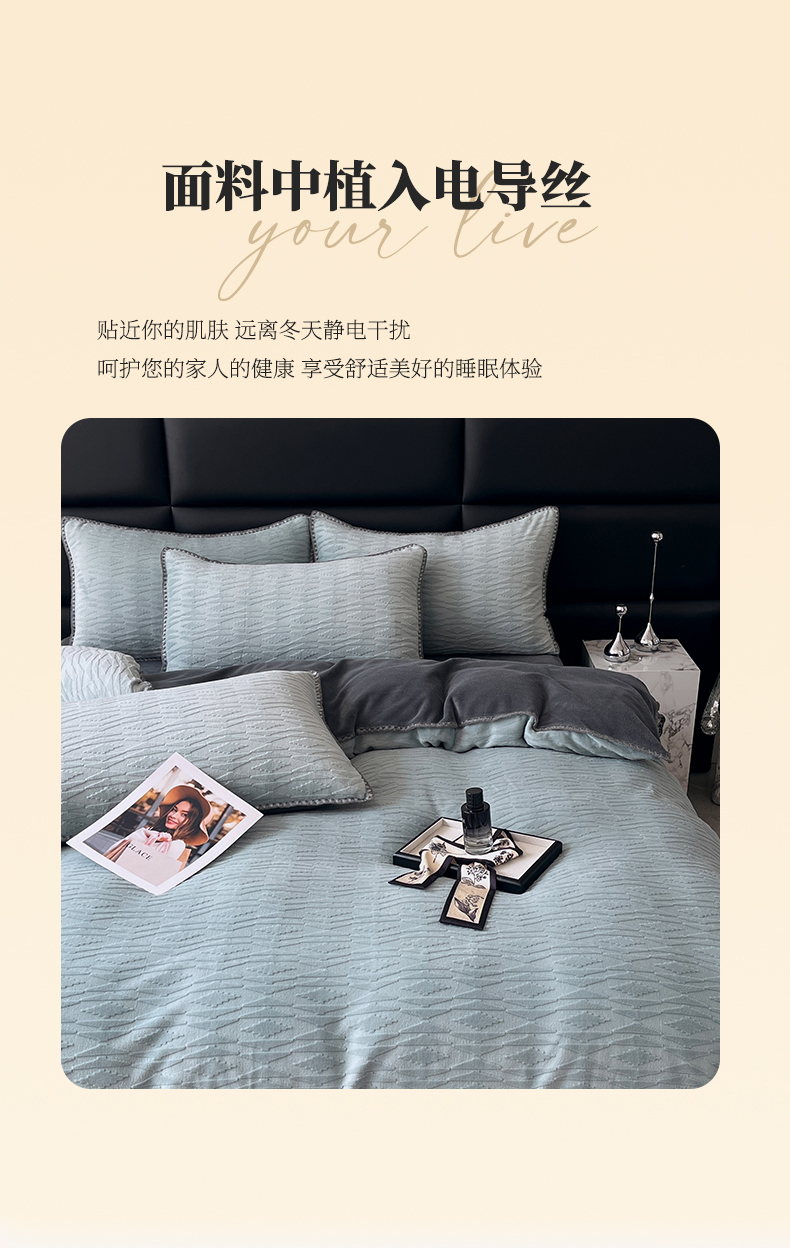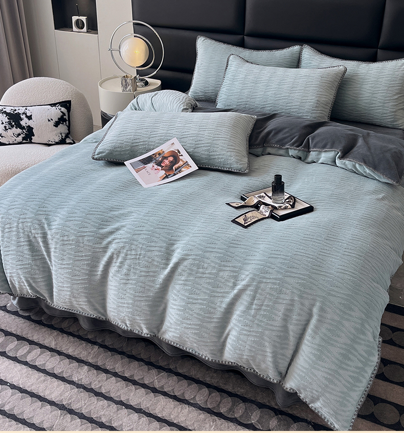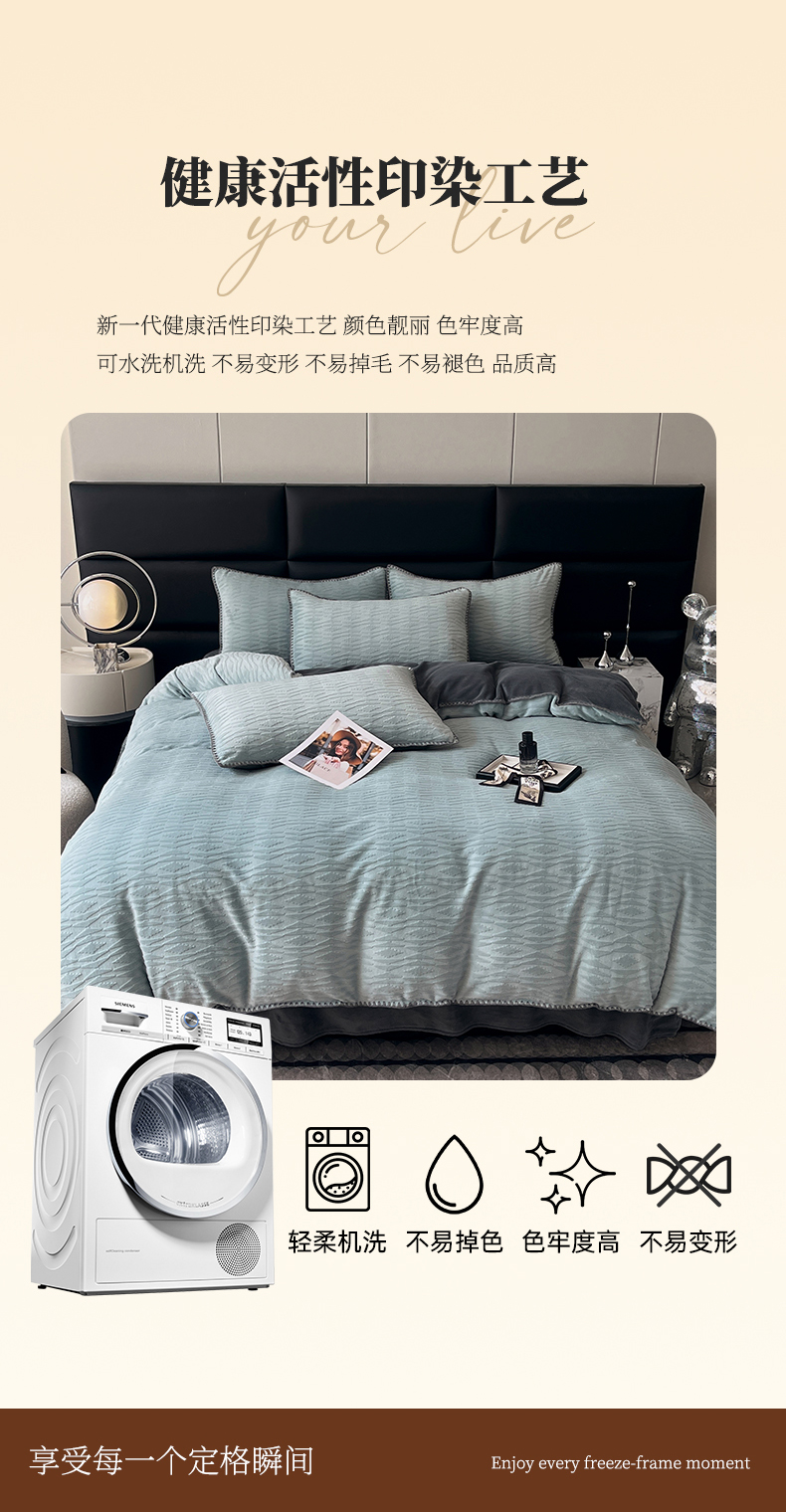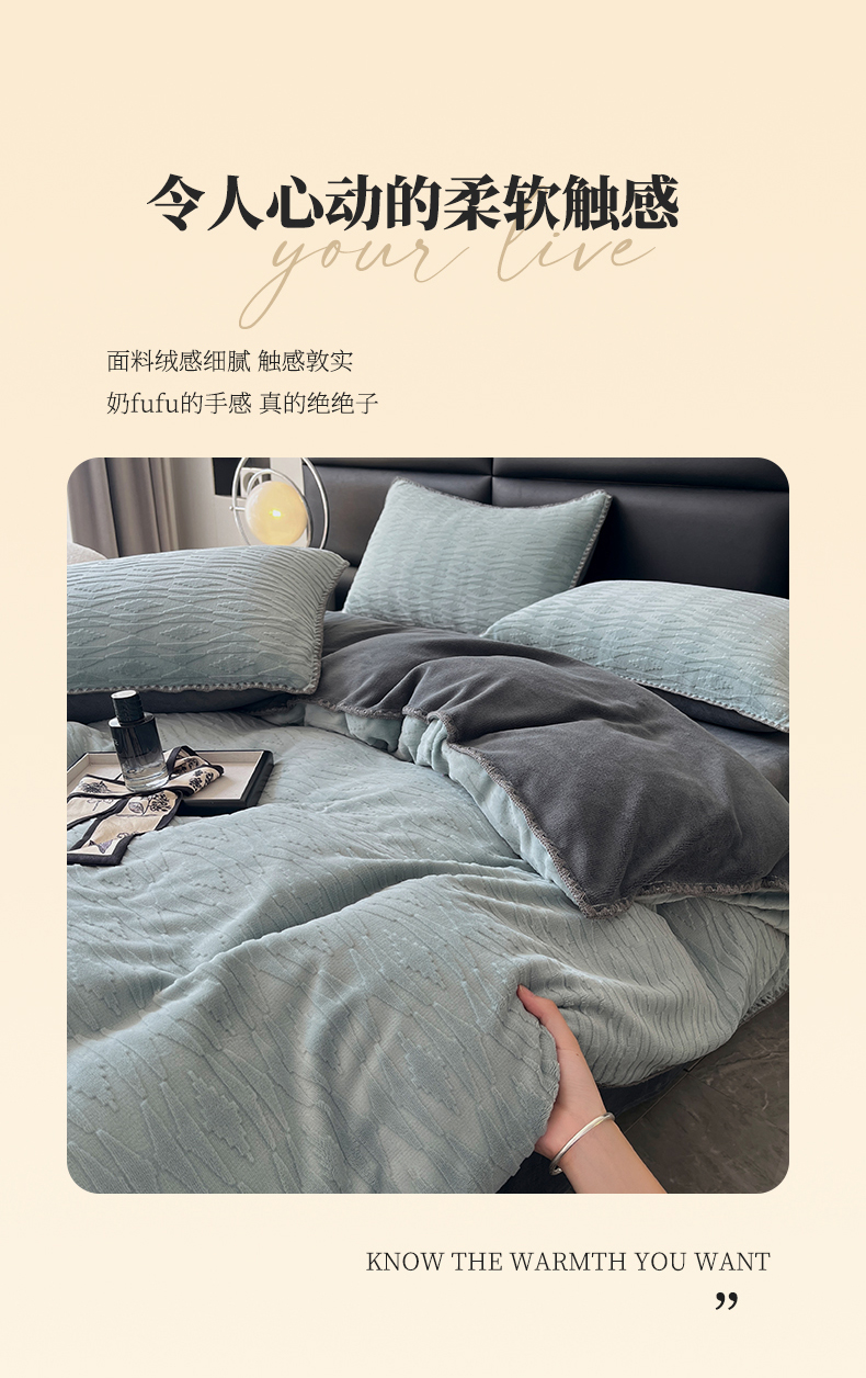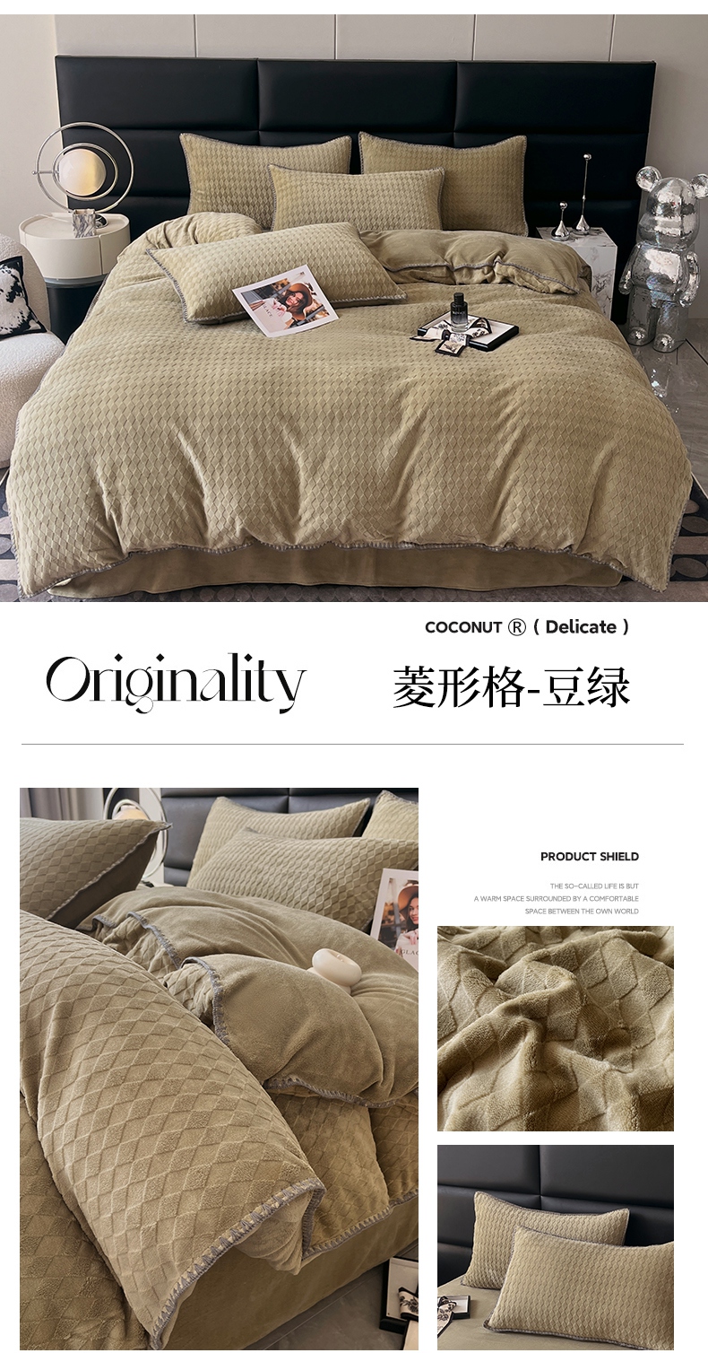 (总)菡宝 【第二批】2025雕花绒牛奶绒四件套-行云流水-支持定做定制尺寸,行云流水-豆绿,行云流水-豆紫,行云流水-米杏