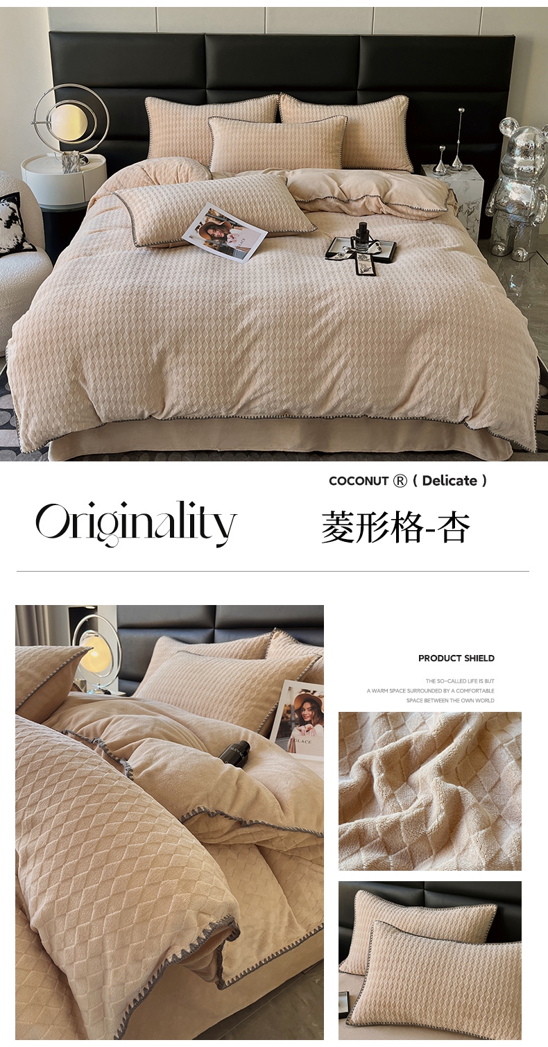 (总)菡宝 2025新款简约良品风牛奶绒四件套-查尔斯系列 支持定做定制尺寸,查尔斯-灰,查尔斯-卡其,卡伦