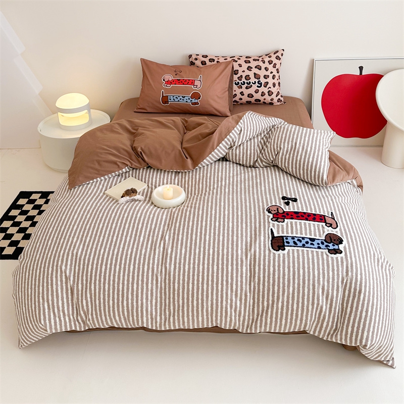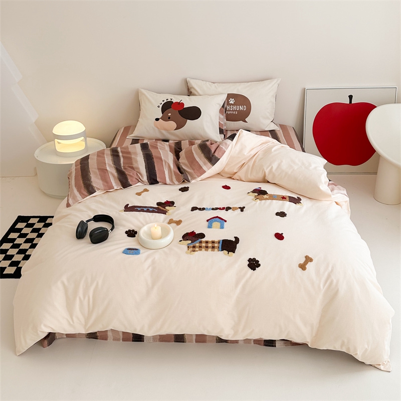 (总)珺柔家纺 2025新款全棉磨毛绣花四件套,风车小熊,海盐雪纳瑞,黑白熊猫,咖啡店小狗,腊肠三小只,萌神小喵,纽扣小熊,苹果小熊-咖,苹果小熊-蓝,夏日时光,小恶魔