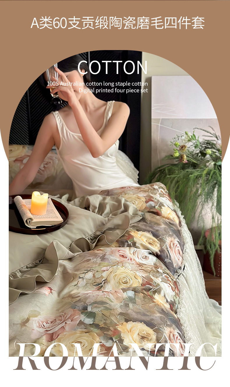 (总)爱缦 2025新款花草自春风系列100支新疆长绒棉四件套,柏林少女,清水芙蓉,云朵吐司