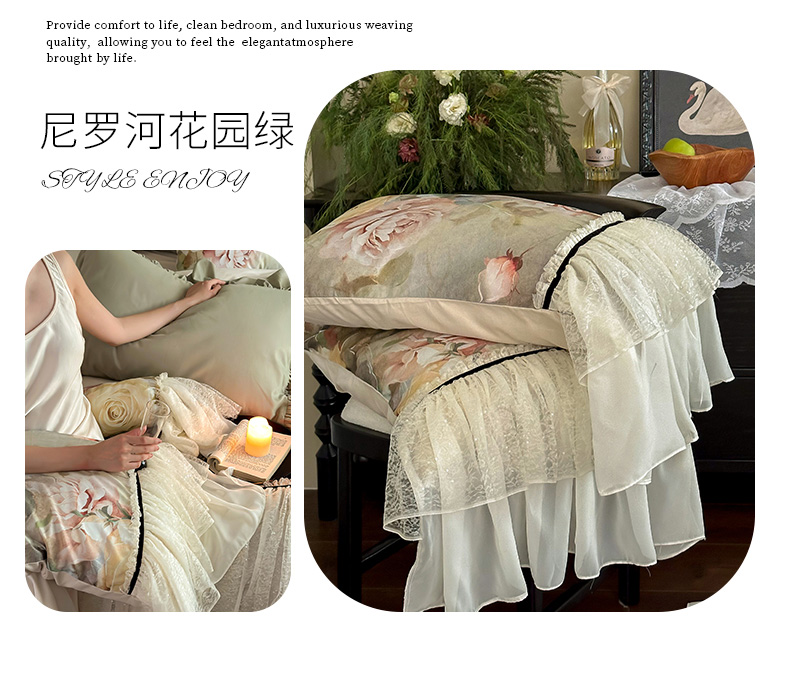 商品名称:爱缦 2024新款尼罗河花园系列60支陶瓷空气磨毛四件套 尼罗河花园绿