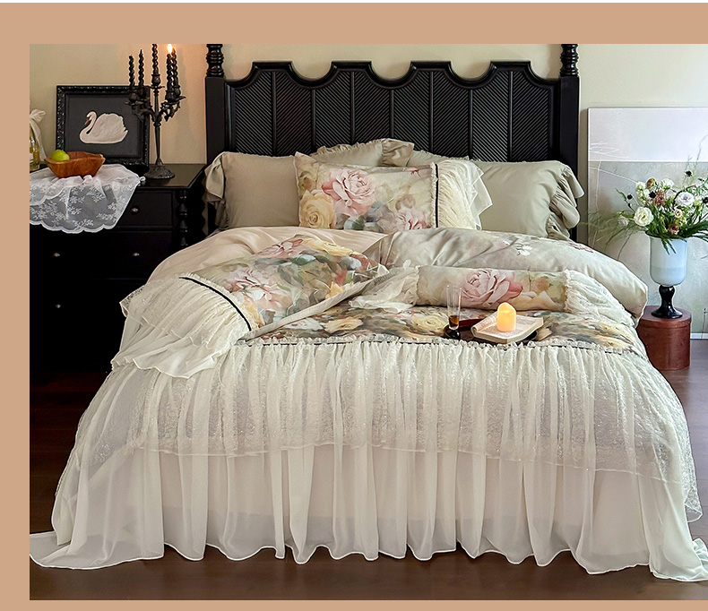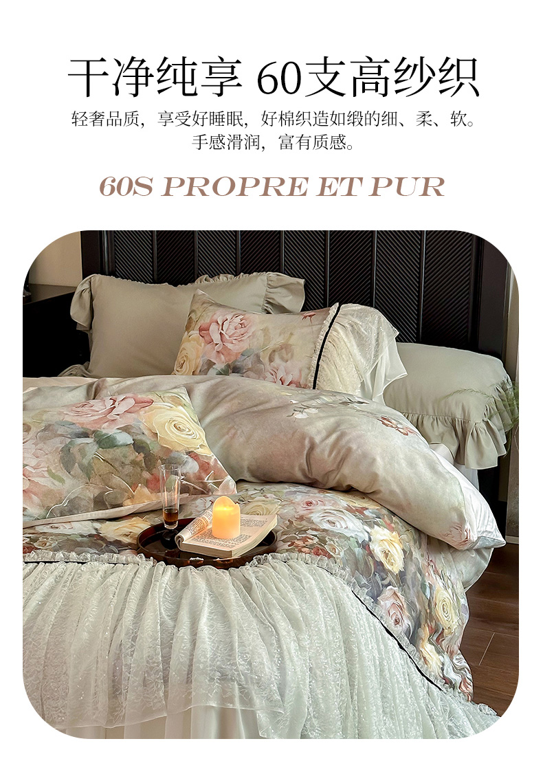(总)爱缦 2024新款尼罗河花园系列60支陶瓷空气磨毛四件套,尼罗河花园粉,尼罗河花园绿
