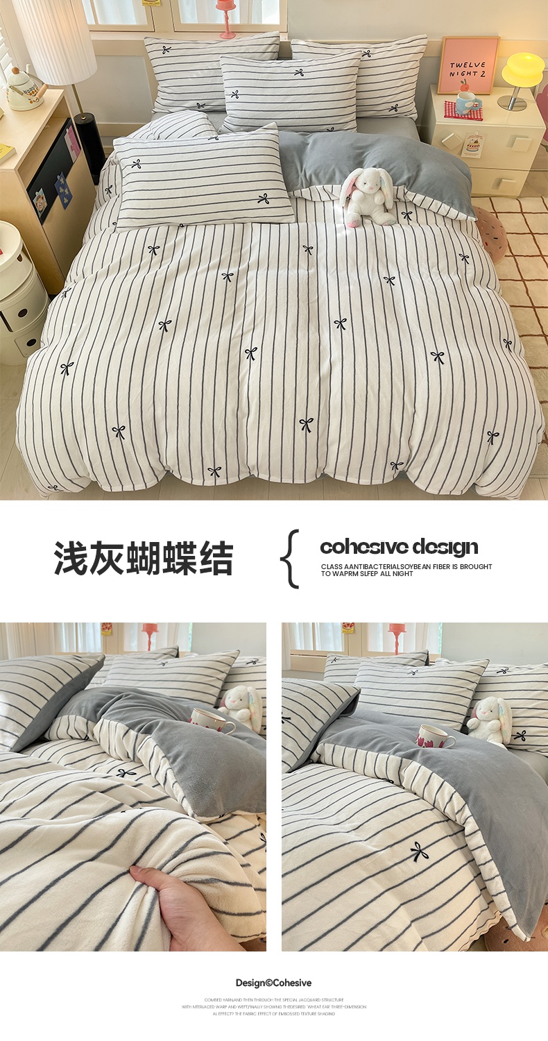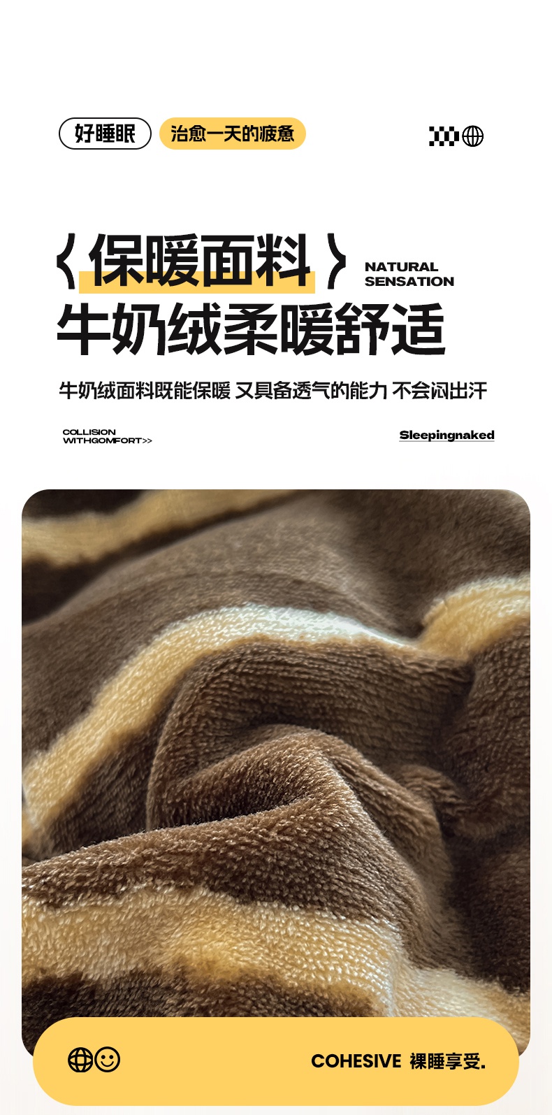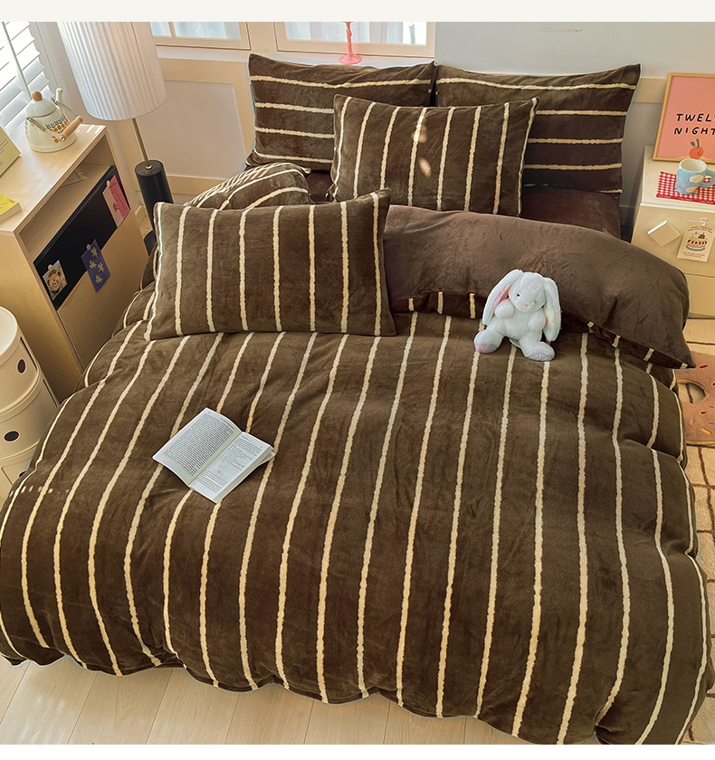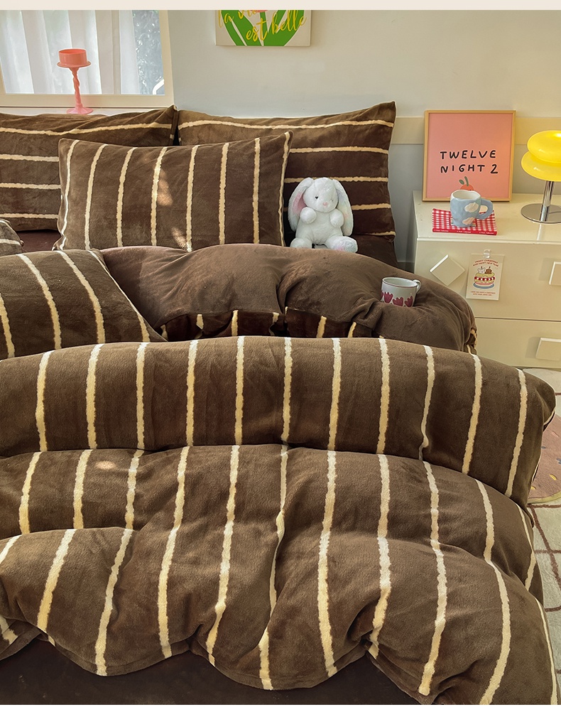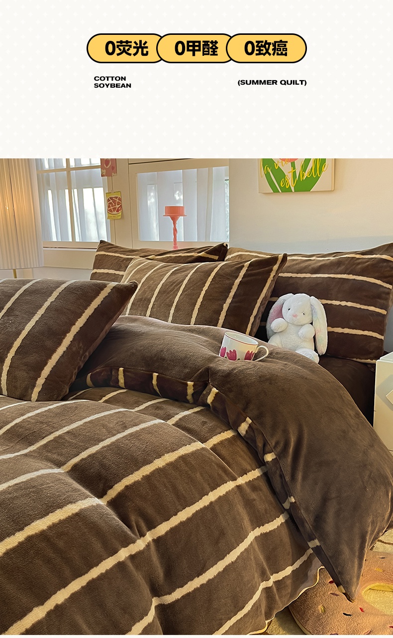 寐眠 2024新款高克重印花牛奶绒四件套条纹风格一 时代咖啡