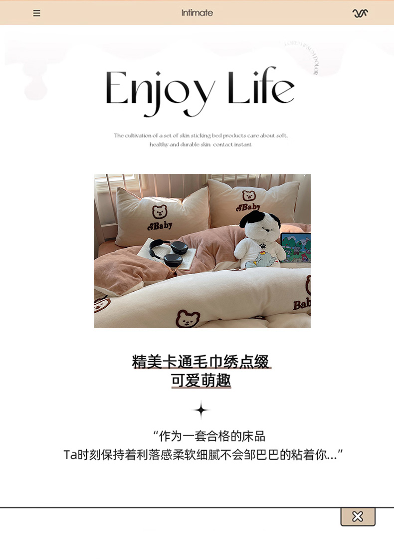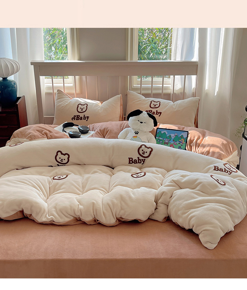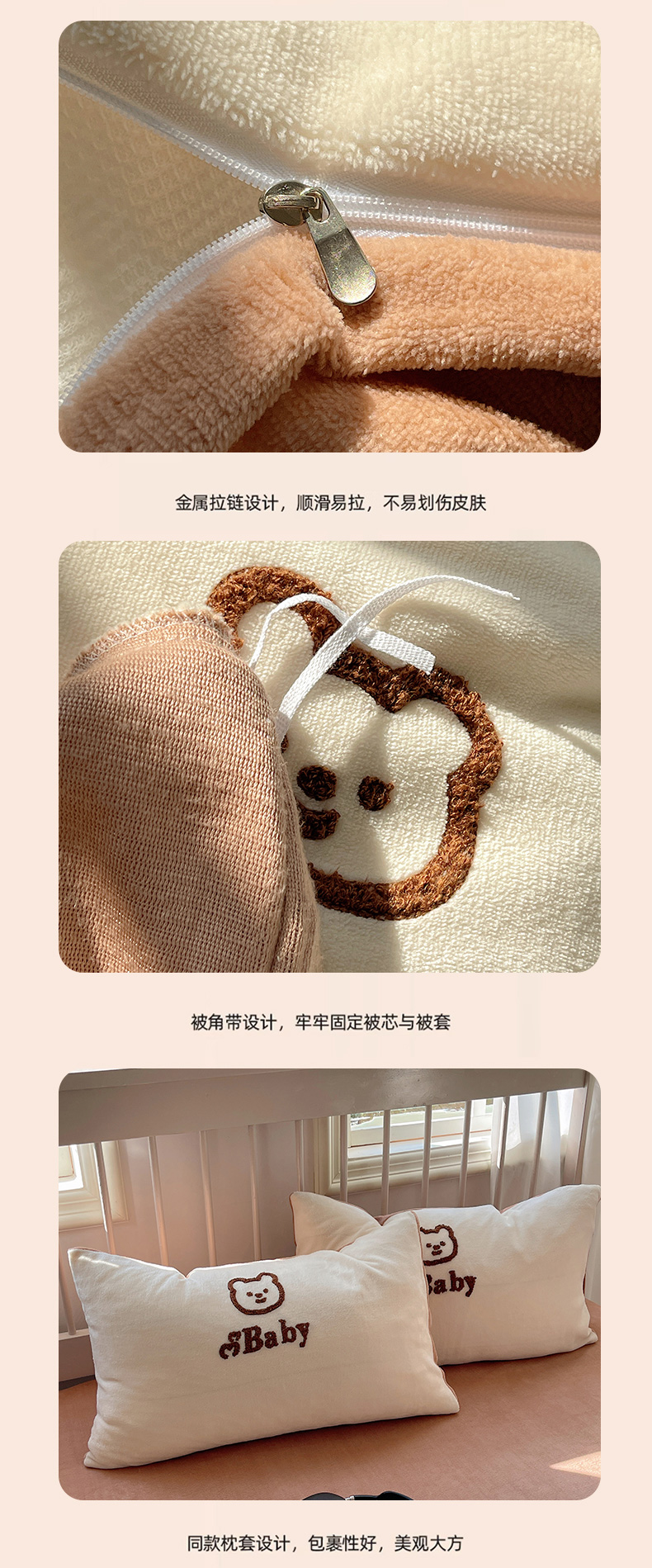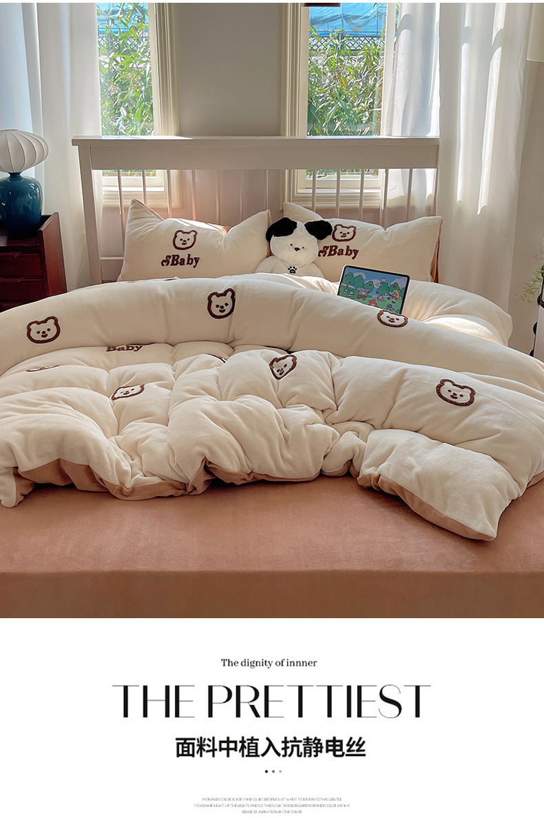 商品名称:红嘴企鹅 2025新款牛奶绒毛巾绣四件套 小熊白咖