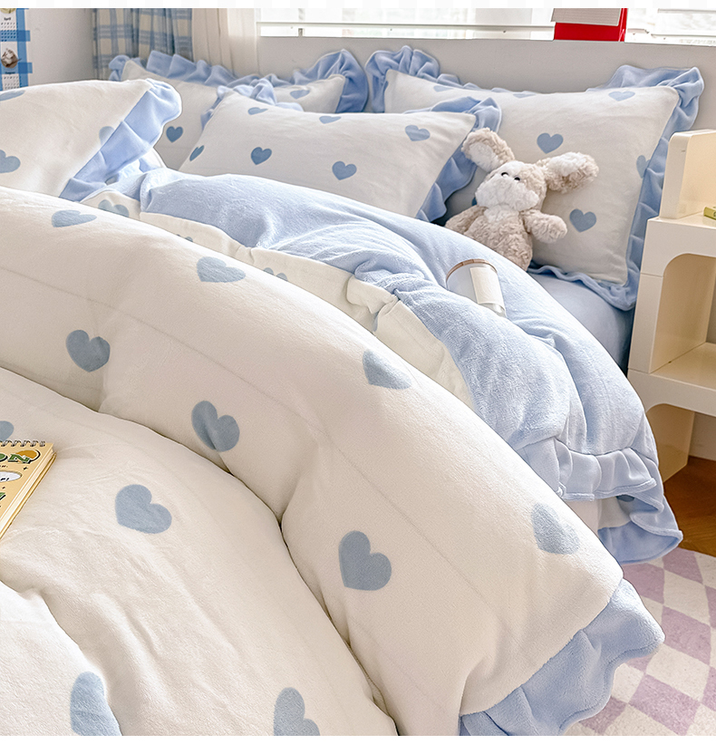 典曼家纺 2024新款A类韩版牛奶绒四件套 小爱心