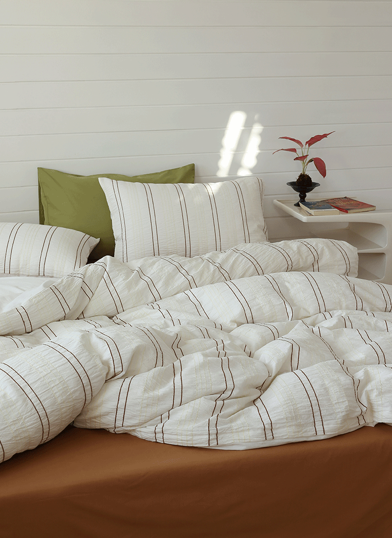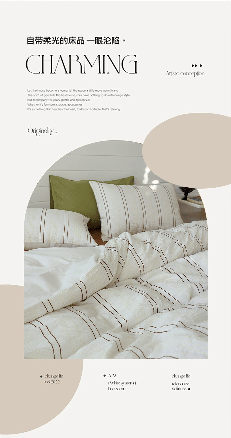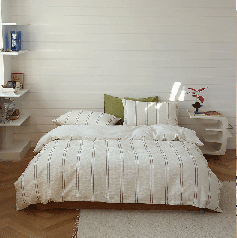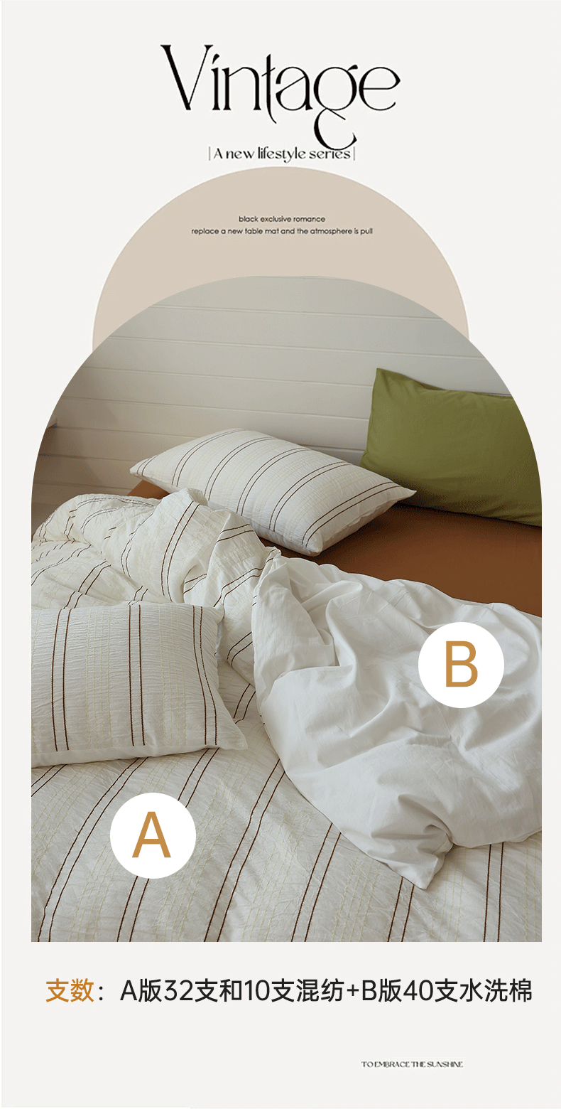 当前位置: 91家纺网 > 商品网购 > 床品套件 > 四件套 > 水洗棉四件套 > 棉眠 2024新款水洗皱皱纱色织提花线条混搭系列四件套 咖黄细条配咖