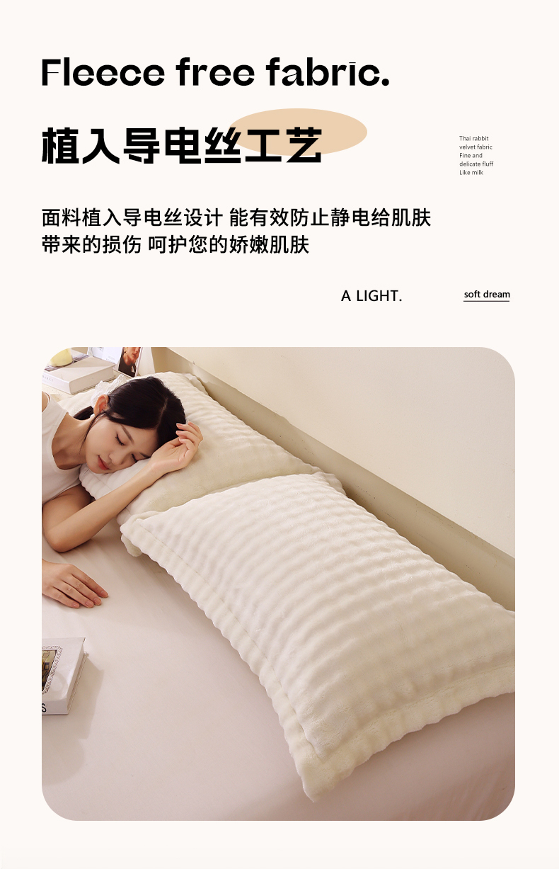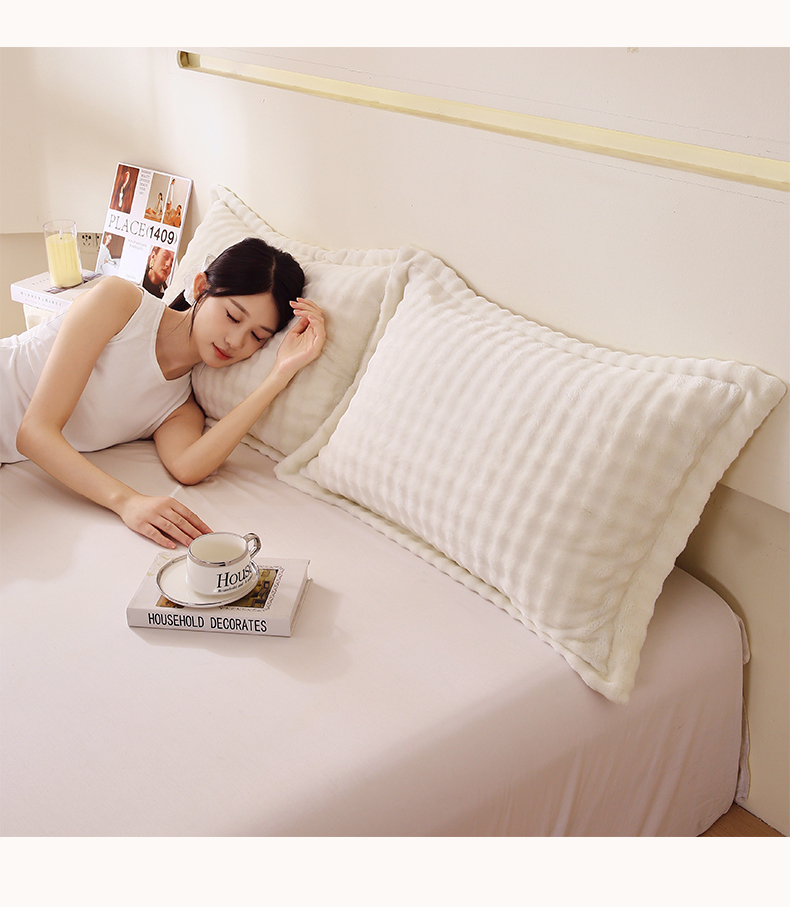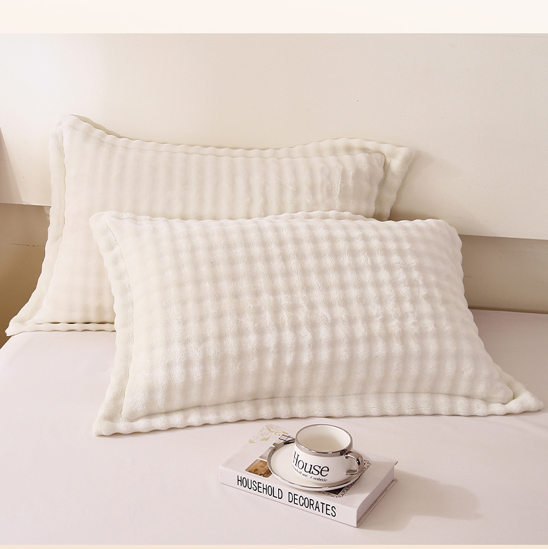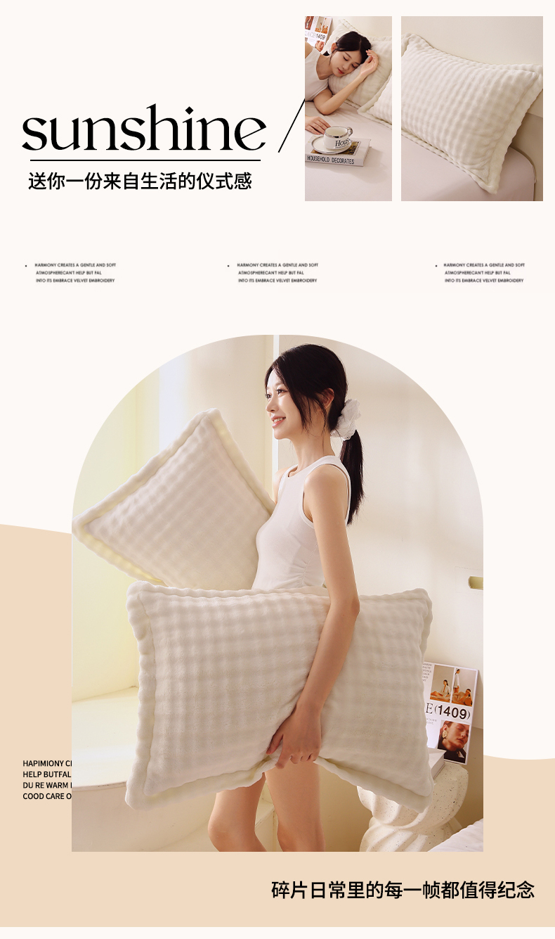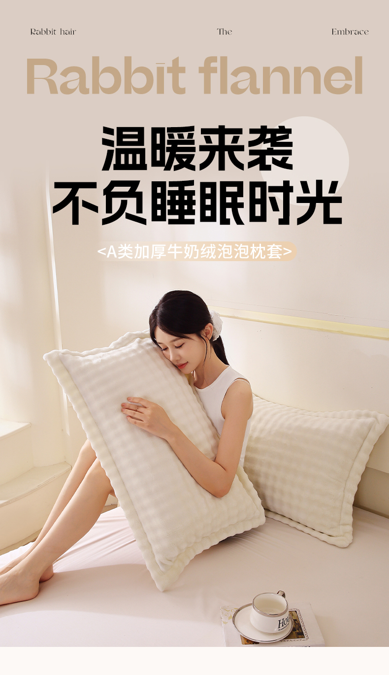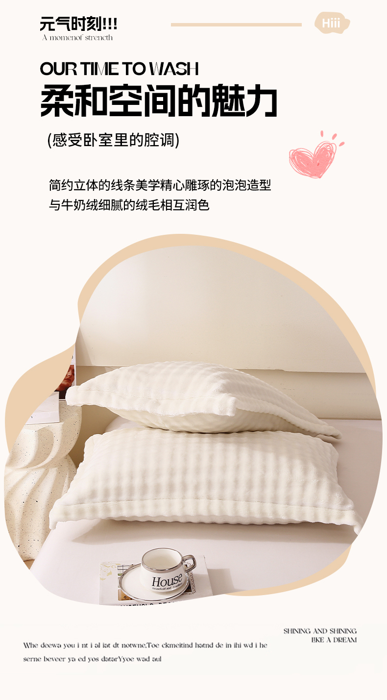 商品名称:芯宜佳 2024新款高克重泡泡牛奶绒枕套 米白