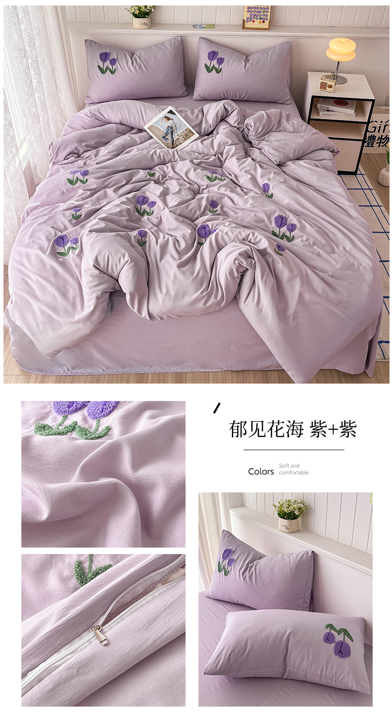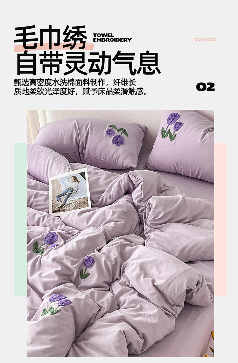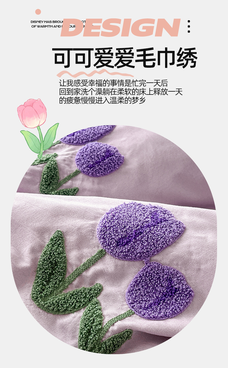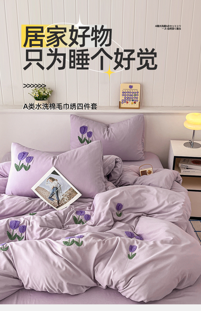 当前位置: 91家纺网 > 商品网购 > 床品套件 > 四件套 > 水洗棉四件套 > 多品家纺 2024新款水洗棉毛巾绣四件套郁见花海 郁见花海 紫+紫
