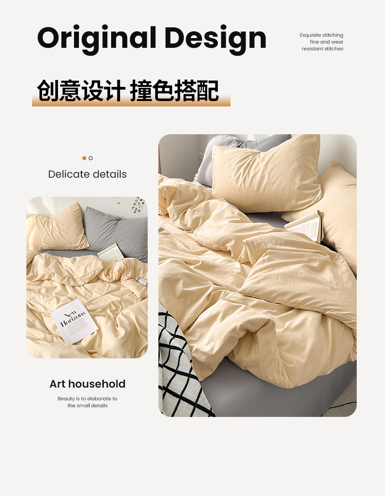 当前位置: 91家纺网 > 商品网购 > 床品套件 > 四件套 > 水洗棉四件套 > 多品家纺 2024新款超柔混搭水洗棉四件套 米黄+银灰