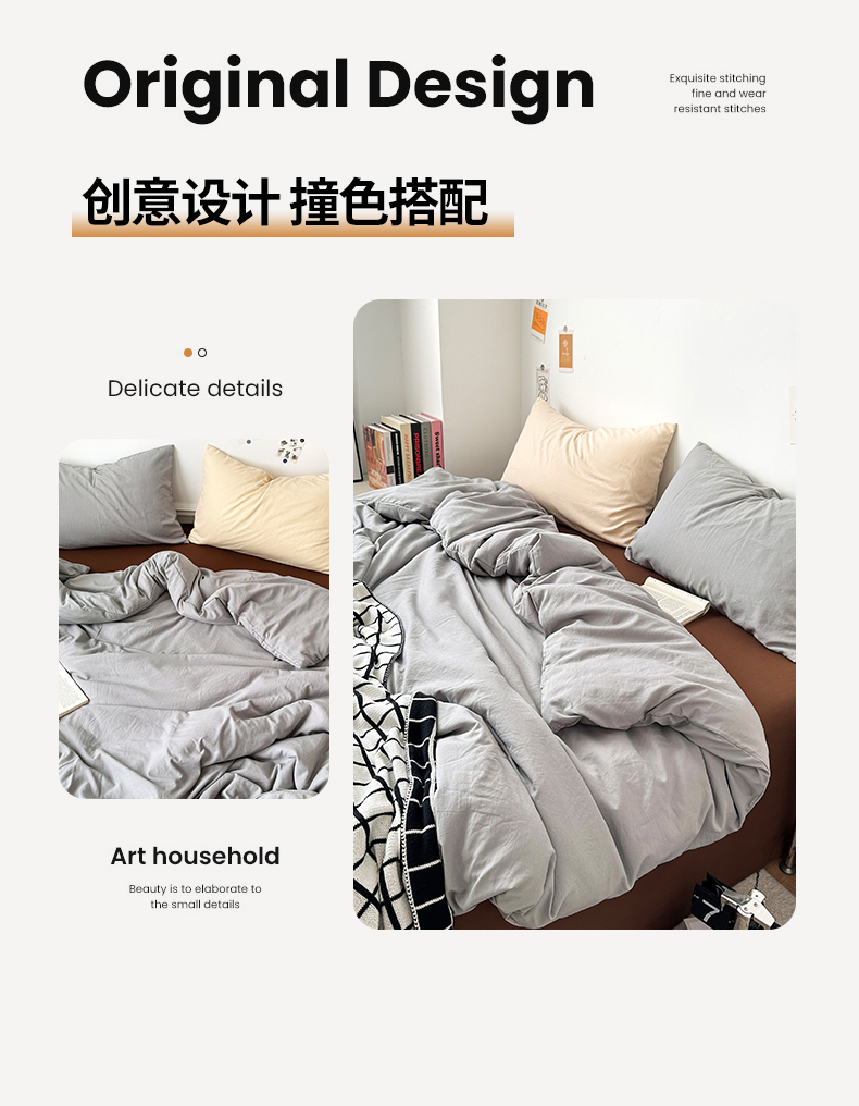 当前位置: 91家纺网 > 商品网购 > 床品套件 > 四件套 > 水洗棉四件套 > 多品家纺 2024新款超柔混搭水洗棉四件套 银灰+棕咖