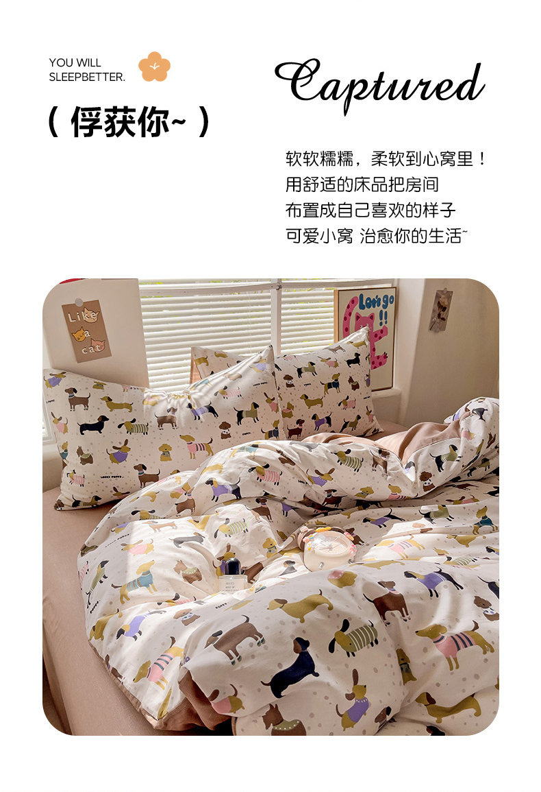 当前位置: 91家纺网 > 商品网购 > 床品套件 > 四件套 > 全棉普通四件套 > 优选良品 2025直播爆款全棉12868印花四件套纯棉学生三件套床笠开心狗家族