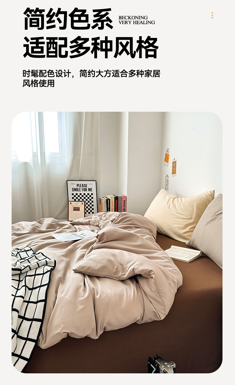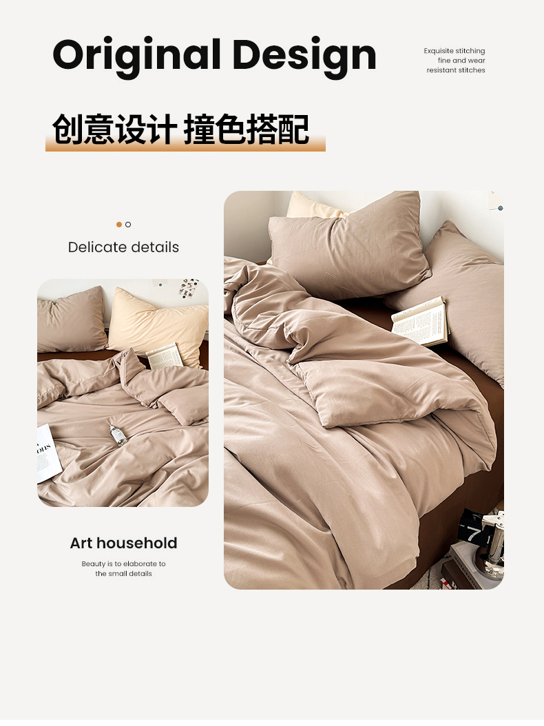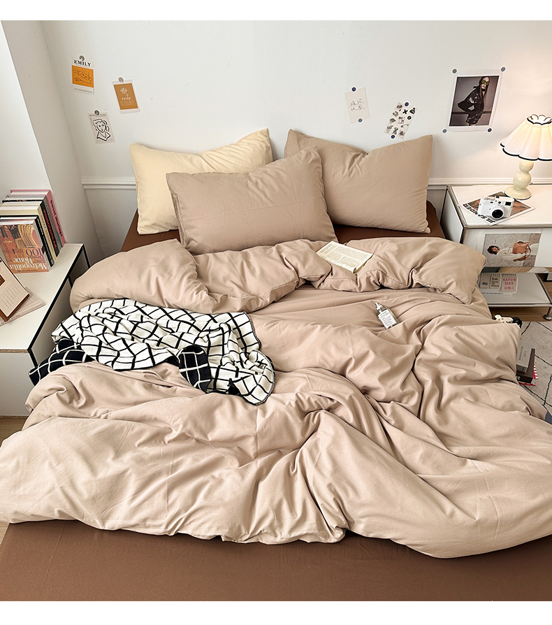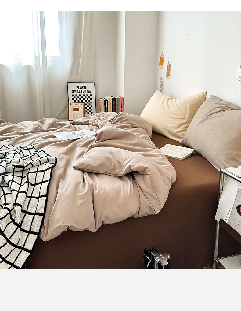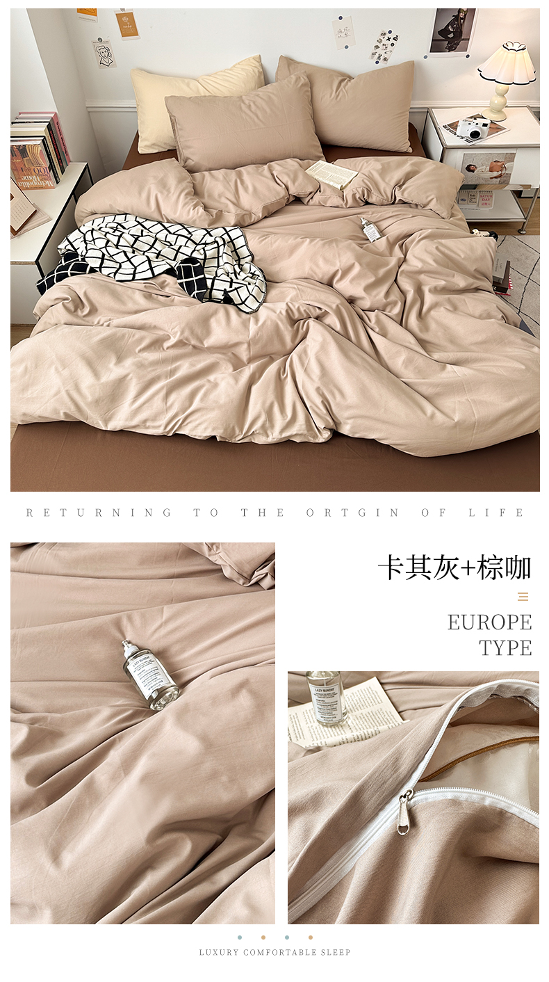 • 91家纺网 家纺一手货源 找家纺 多品家纺 2024新款超柔混搭水洗棉四件套--单被套 卡其灰+棕咖