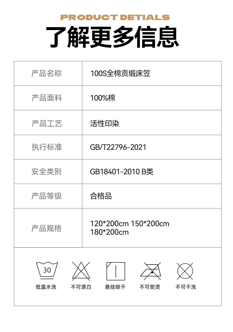 商品名称:(总)798家纺 2025新款纯色全棉贡缎单品系列-单床笠