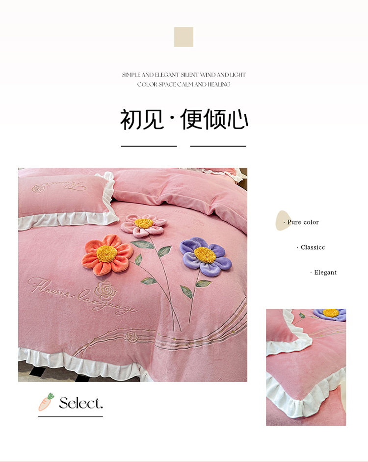 9斤高端韩版少女心法式公主风贴布绣花牛奶绒四件套小清新绒兔毛绒法莱绒床盖被套丝绒兔毛绒法莱绒床盖被套 锦上添花-奶油粉