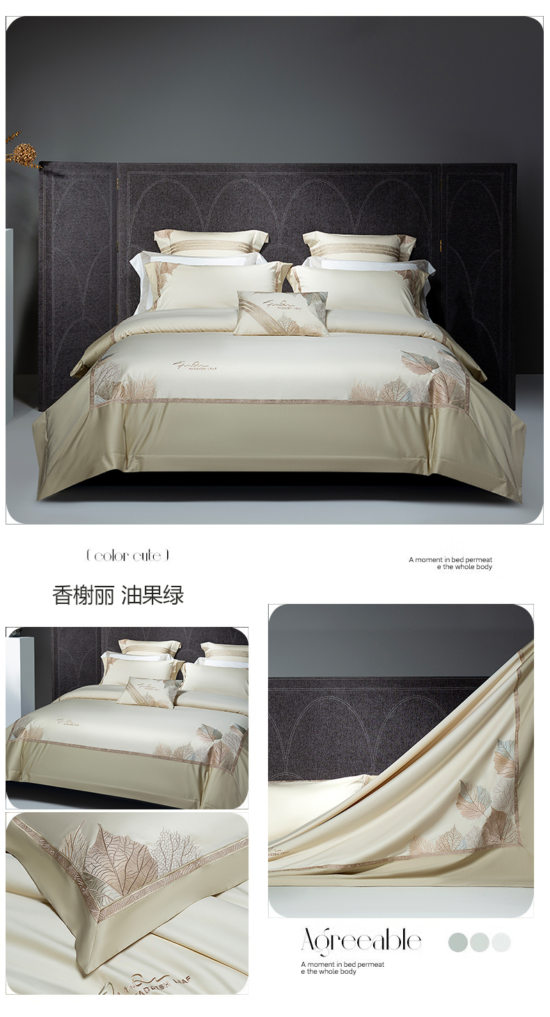 诗黛尔 2024秋冬新款长绒棉刺绣四件套-香榭丽系列 香榭丽-油果绿