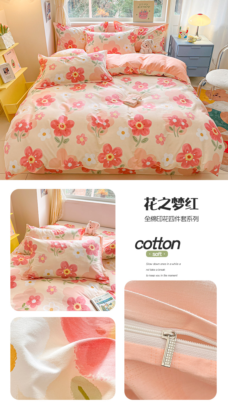 商品名称:绵庭家纺 2024新款全棉印花四件套 花之梦 红