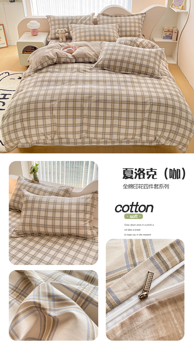 绵庭家纺 2024新款全棉印花四件套 夏洛克咖