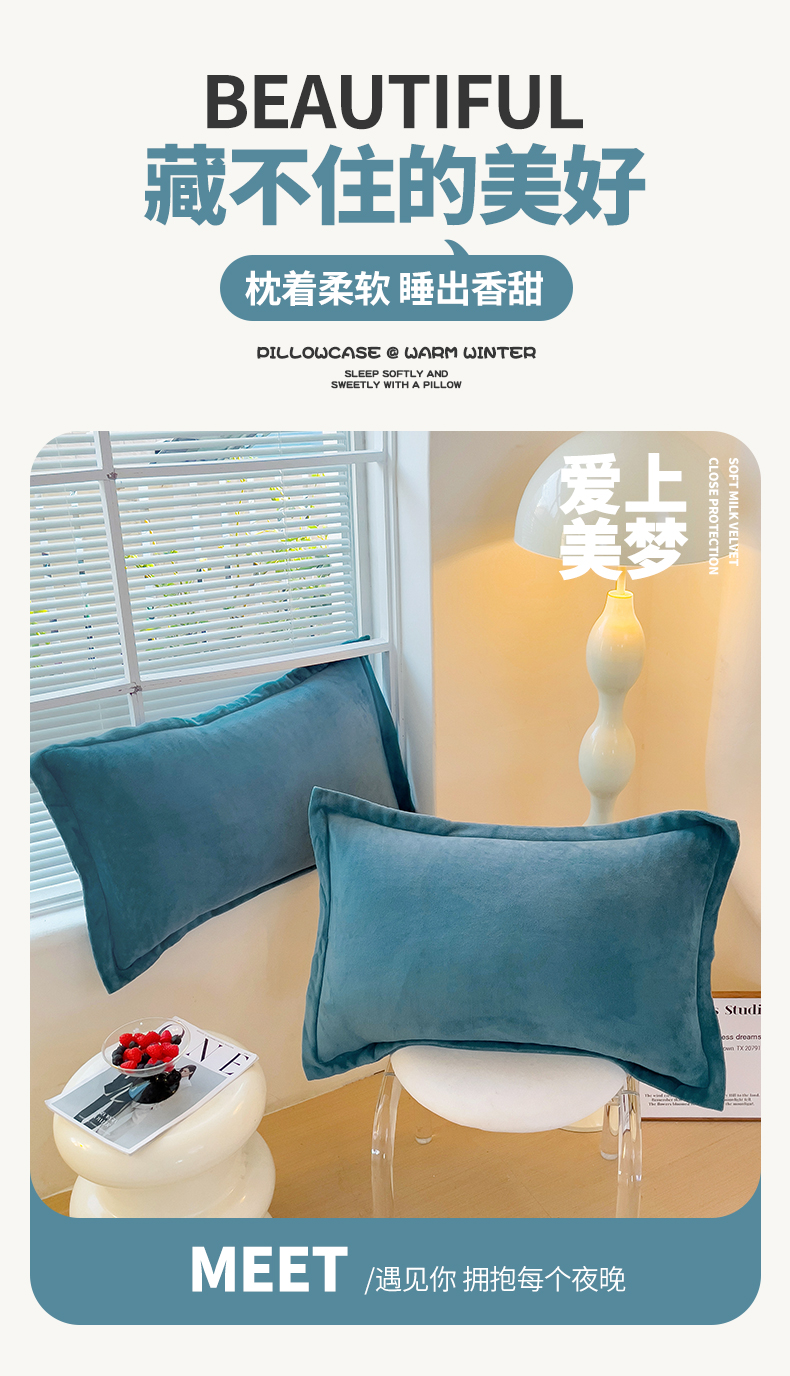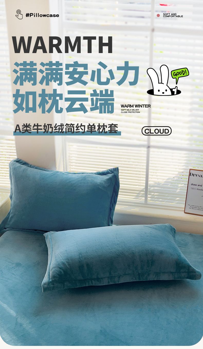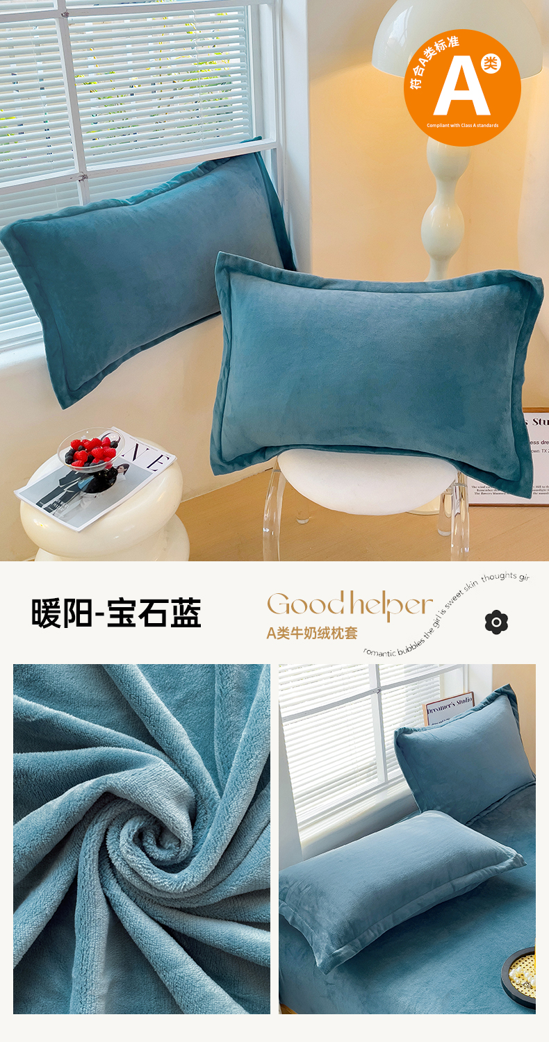 恬澳家纺 2025新款暖阳牛奶绒枕套 暖阳-宝石蓝