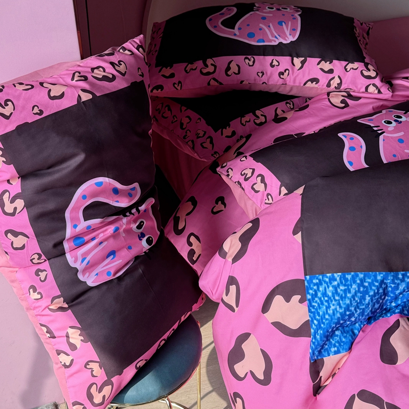 商品名称:色鬼布艺 2024新款双面磨毛数码印花四件套 磨毛粉色小猫咪