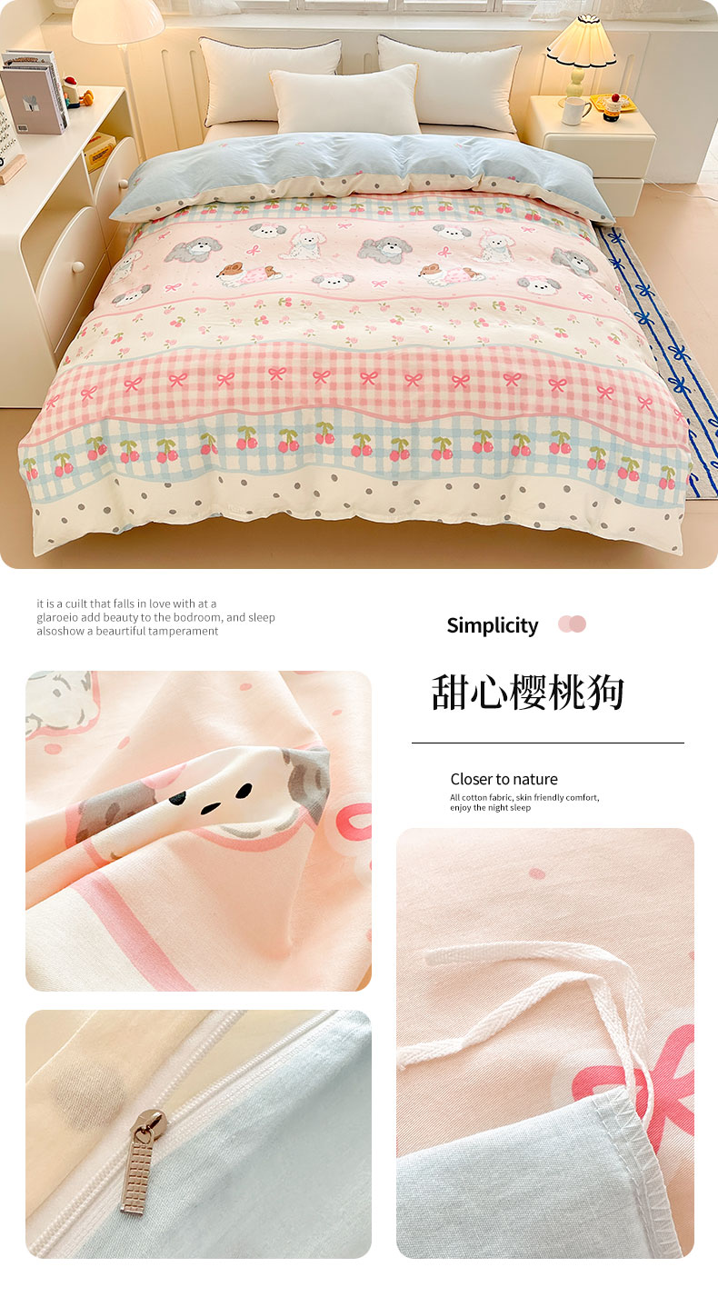 绵庭家纺 2025新款全棉印花单被套系列 甜心樱桃狗