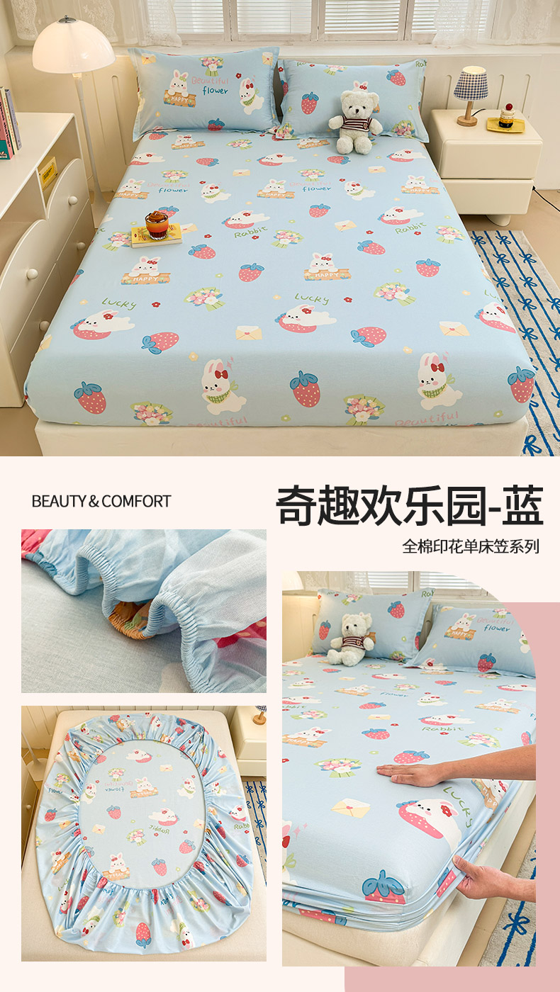 绵庭家纺 2025新款全棉印花单床笠系列 奇趣欢乐园-蓝