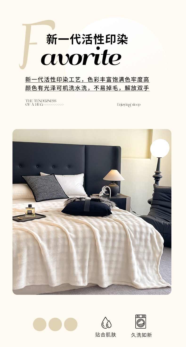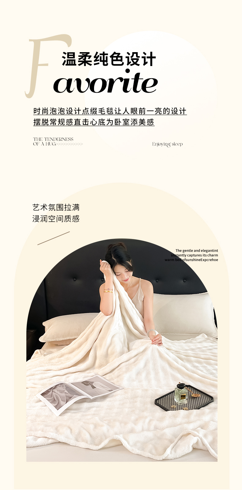 商品名称:(总)一帆毯业 免费压缩抽空 300克 仿兔毛泡泡绒高克重法莱绒牛奶绒珊瑚绒兔兔卷边毛毯(外贸跨境供货)