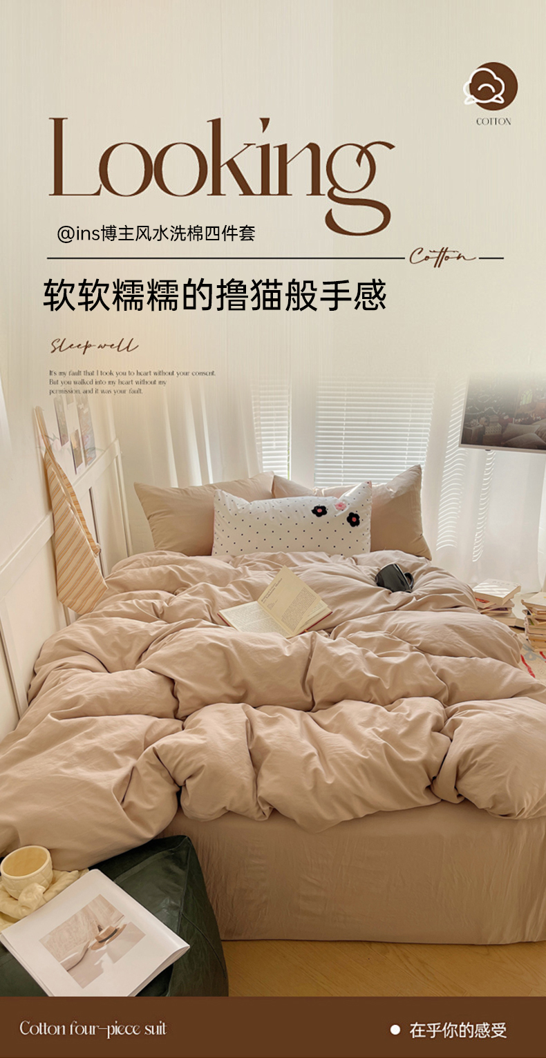 当前位置: 91家纺网 > 商品网购 > 床品套件 > 四件套 > 水洗棉四件套 > 阿曼达 2024最新款奶fufu-ins博主风纯色、混搭、双色软软糯糯亲肤透气水洗m四件套(软糯舒适,非市场普通面料!!!)水洗m-咖色