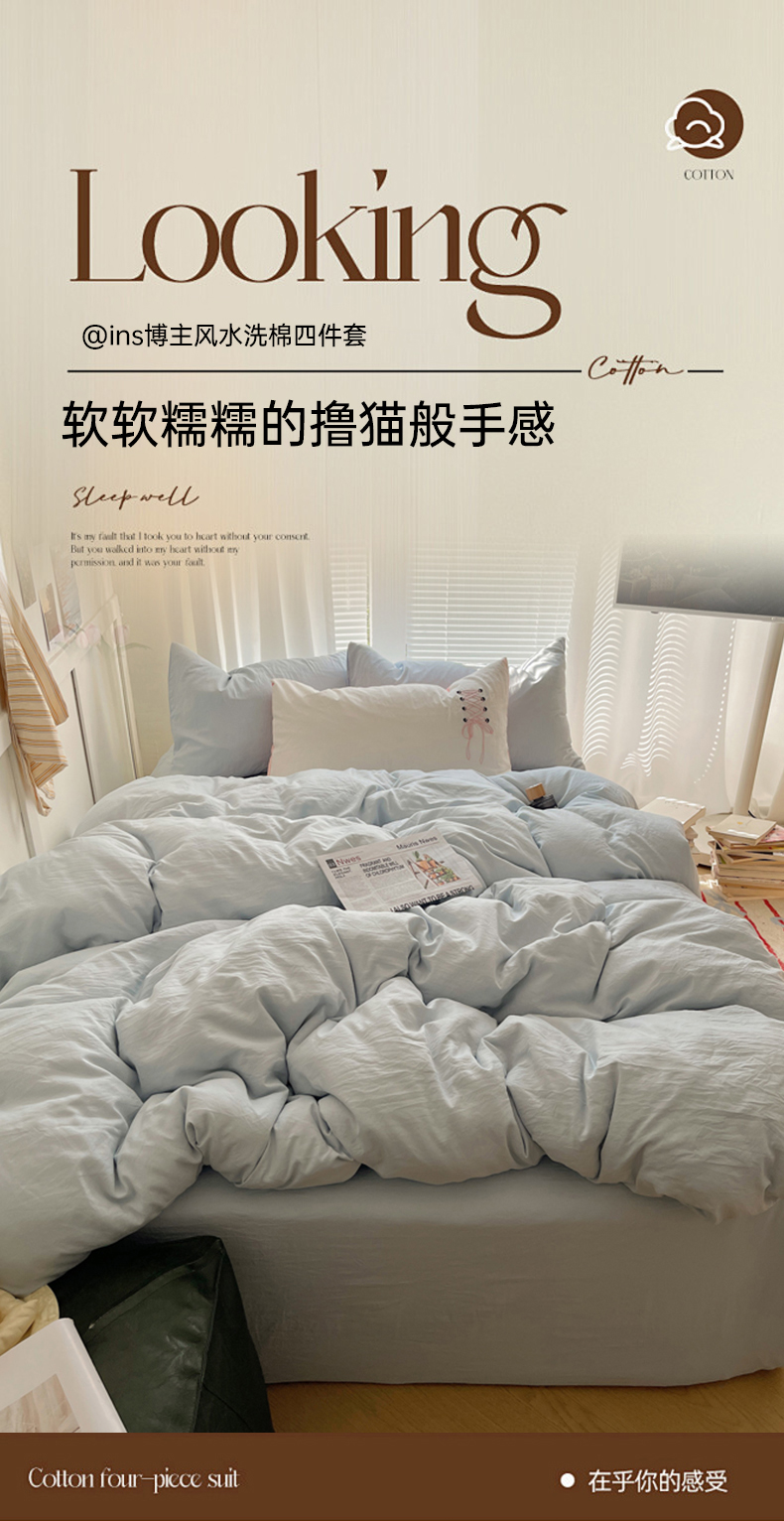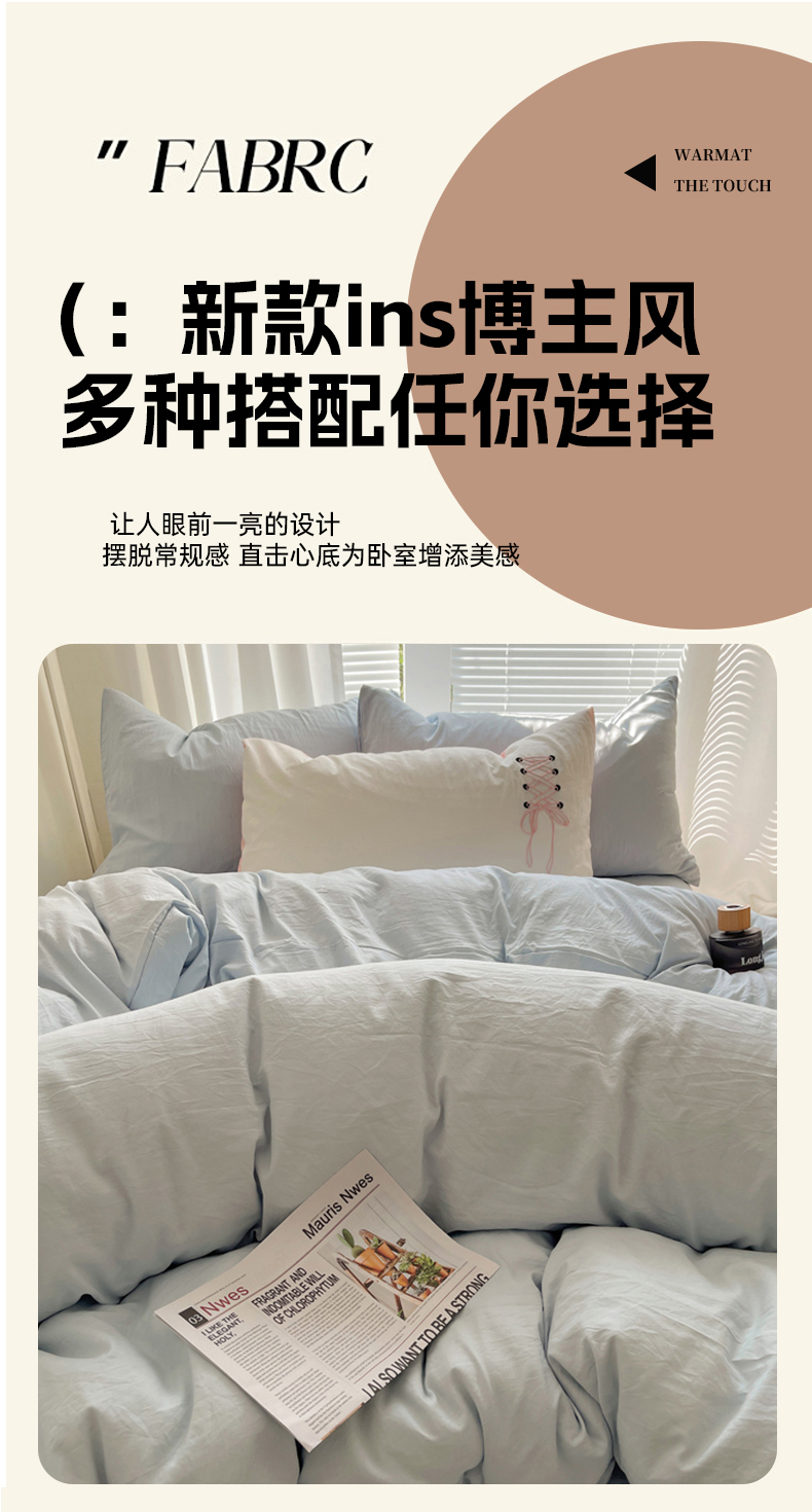 当前位置: 91家纺网 > 商品网购 > 床品套件 > 四件套 > 水洗棉四件套 > 阿曼达 2024最新款奶fufu-ins博主风纯色、混搭、双色软软糯糯亲肤透气水洗m四件套(软糯舒适,非市场普通面料!!!)水洗m-天空蓝
