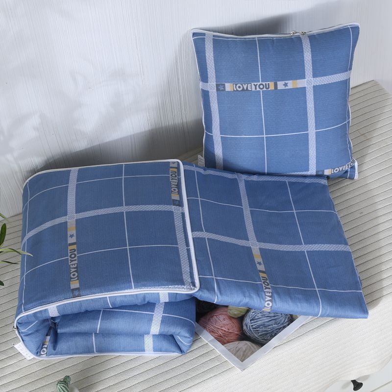 雷人家纺 2021新款全棉抱枕被 维斯爱语-蓝