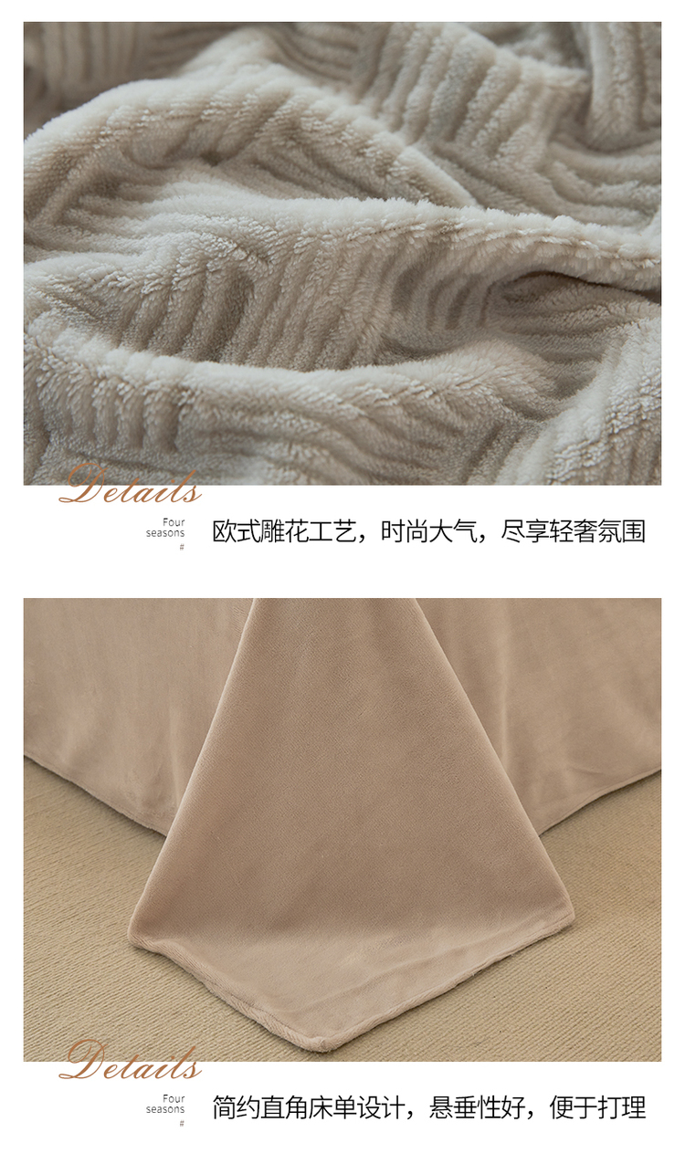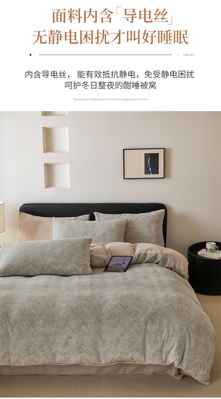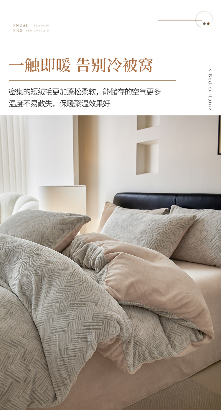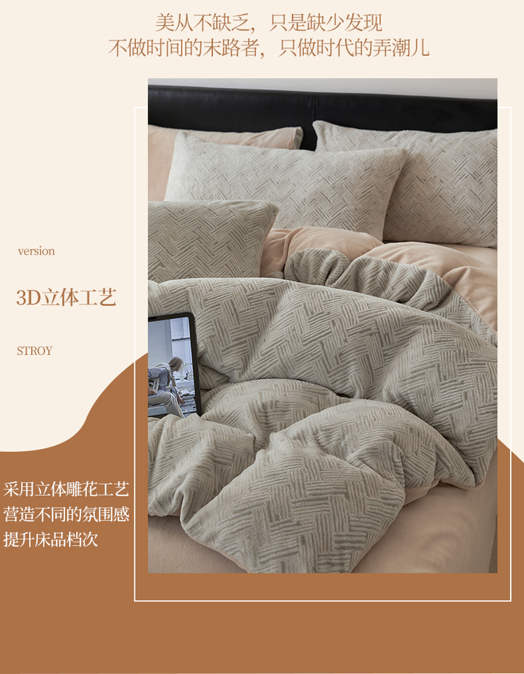 商品名称:(买家秀爆款不断货)A类母婴级牛奶雕花绒四件套珊瑚绒小香风牛奶绒四件套雪花绒四件套雕花牛奶绒四件套白 小几何-茶色