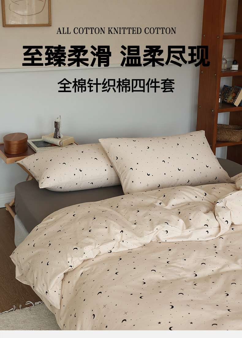 商品名称:2025春夏新品母婴A类全棉纯棉针织棉软糯糯清新小碎花床单款四件套 满天星卡其