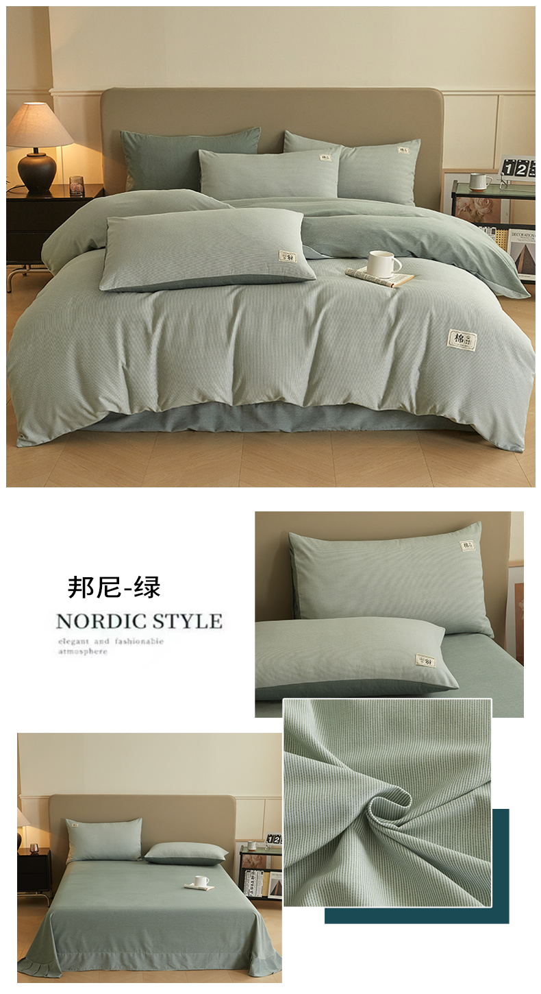 当前位置: 91家纺网 > 商品网购 > 床品套件 > 四件套 > 普通磨毛四件套 > 悦织湾家纺 2025春秋新款纯色全棉纯棉磨毛四件套床单枕套被套三四件套 邦尼-绿