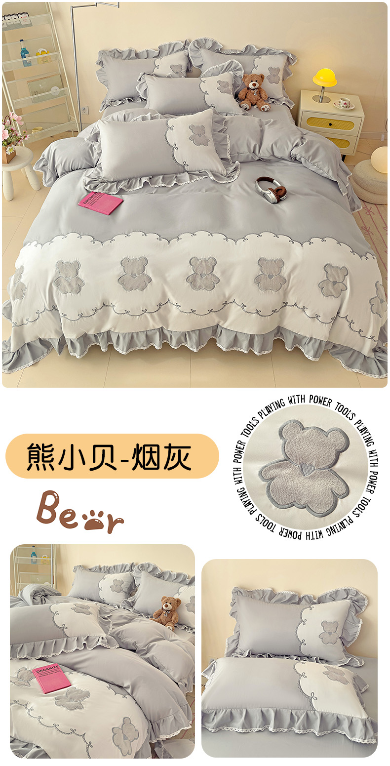 当前位置: 91家纺网 > 商品网购 > 床品套件 > 四件套 > 普通磨毛四件套 > 慕语家纺 2025新款高定贴布绣磨毛四件套-熊小贝 熊小贝-烟灰