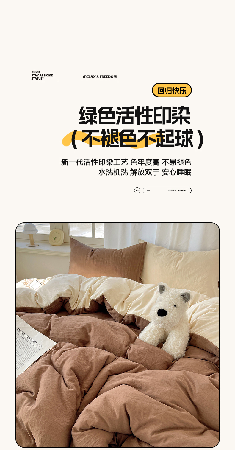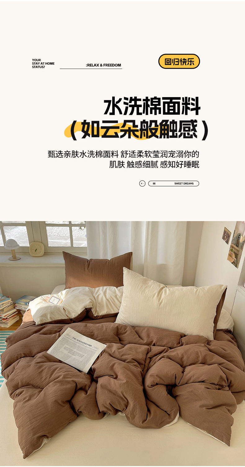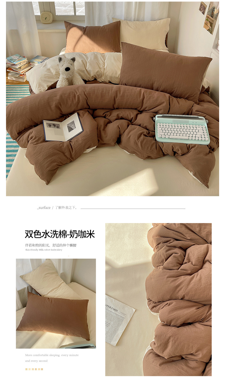当前位置: 91家纺网 > 商品网购 > 床品套件 > 四件套 > 水洗棉四件套 > 阿曼达 2025新款ins博主风纯色混搭双色水洗m四件套 双色水洗m-奶咖米