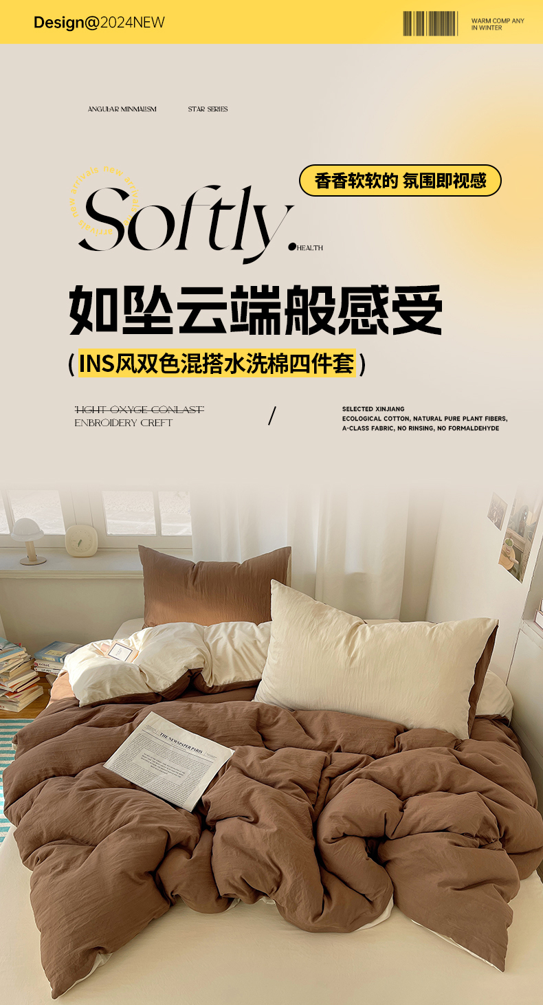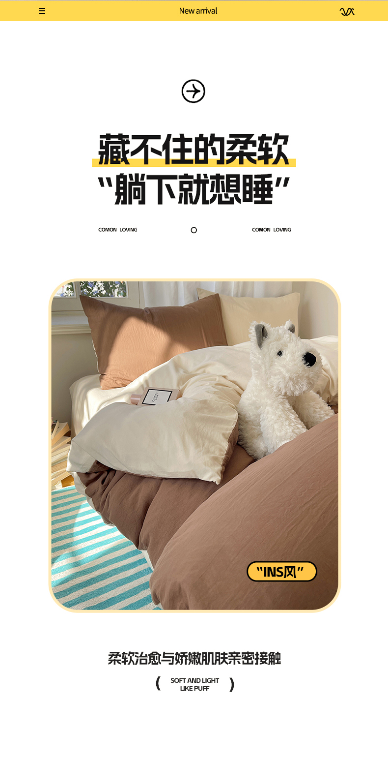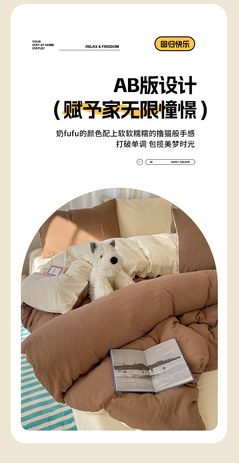 当前位置: 91家纺网 > 商品网购 > 床品套件 > 四件套 > 水洗棉四件套 > 阿曼达 2025新款ins博主风纯色混搭双色水洗m四件套 双色水洗m-奶咖米