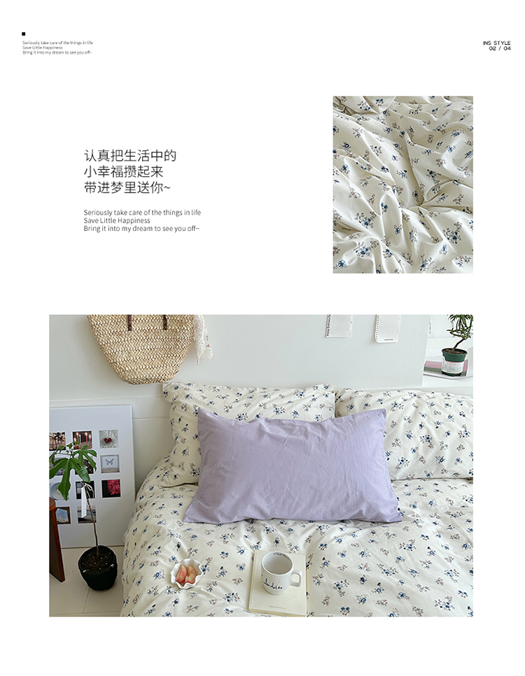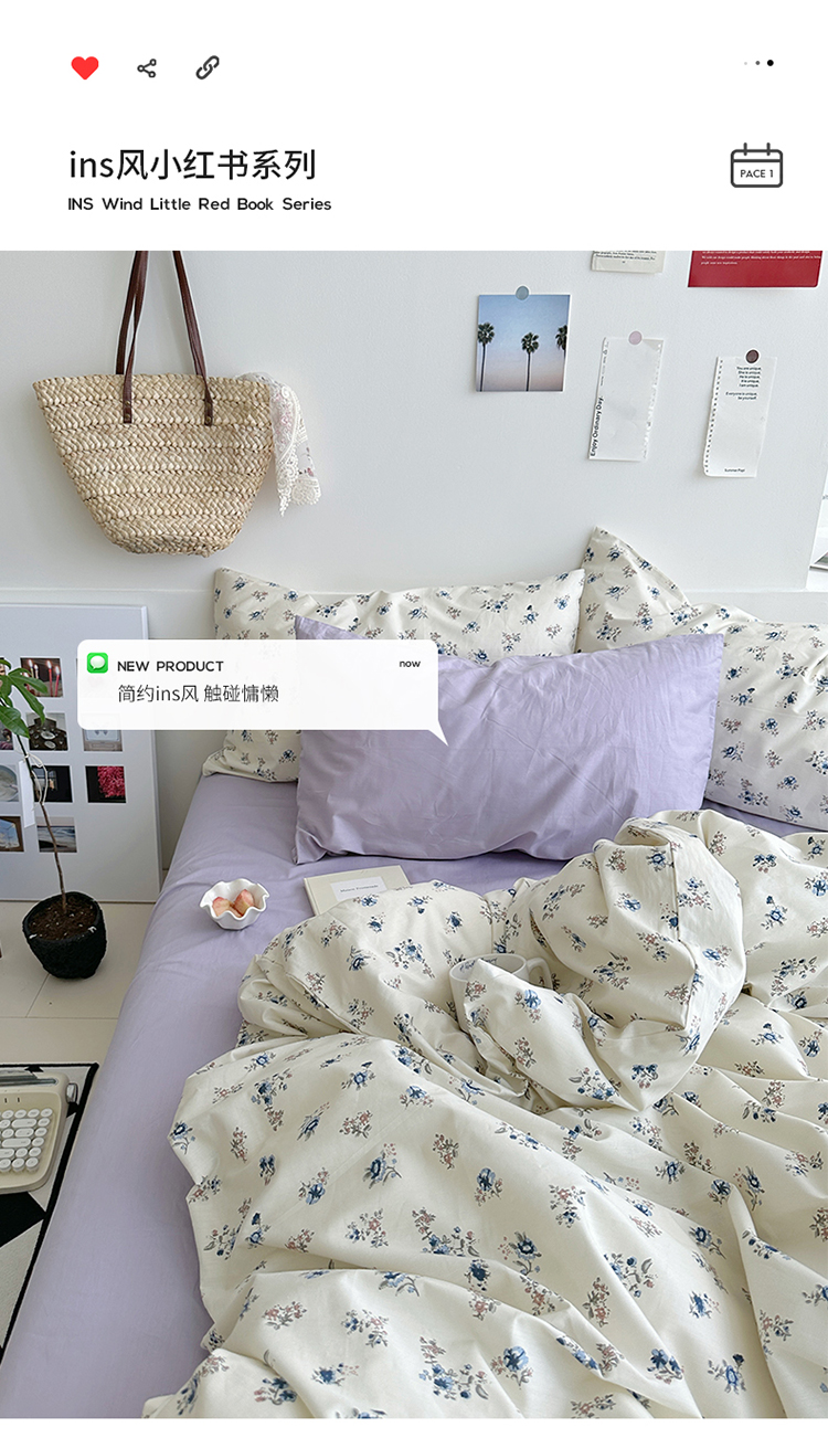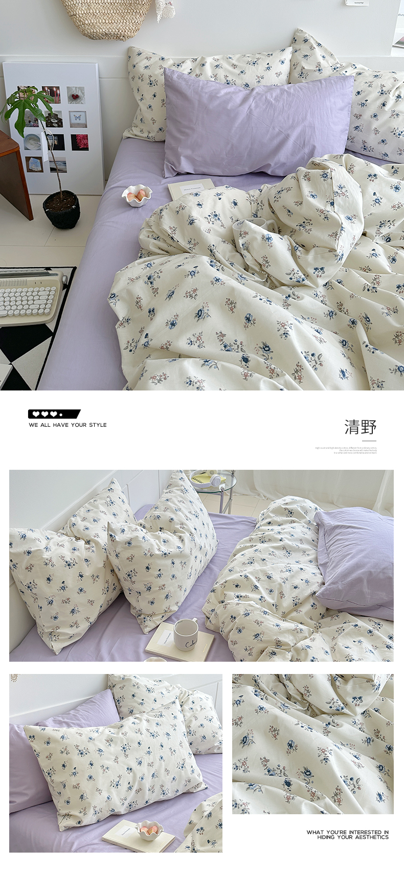 当前位置: 91家纺网 > 商品网购 > 床品套件 > 四件套 > 全棉普通四件套 > 2025新款纯棉小清新四件套小碎花学生三件套纯色床单印花枕套双人床笠 清野