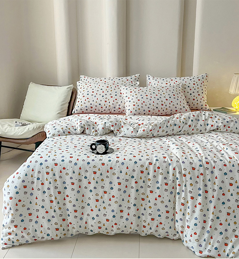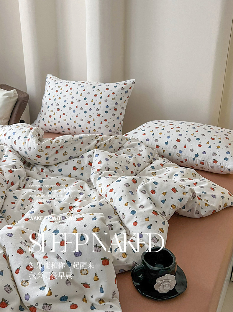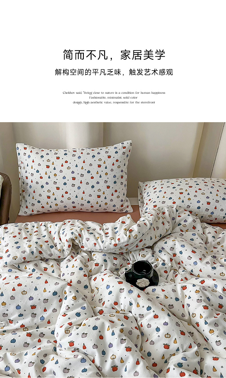 当前位置: 91家纺网 > 商品网购 > 床品套件 > 四件套 > 其它四件套 > 暖芯优选 2025新款针织棉双层纱四件套小碎花被套床单床笠款学生三件套新款直播热款-叠拍图-系列一 水果派