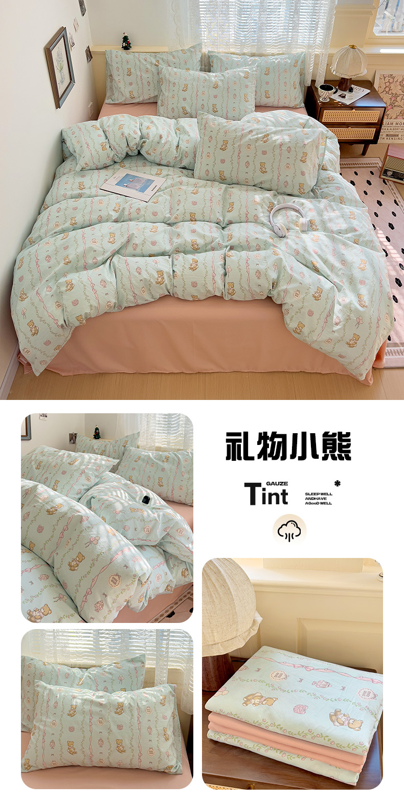 当前位置: 91家纺网 > 商品网购 > 床品套件 > 四件套 > 其它四件套 > 夜笙2025新款A类水洗棉双层纱印花四件套 礼物小熊