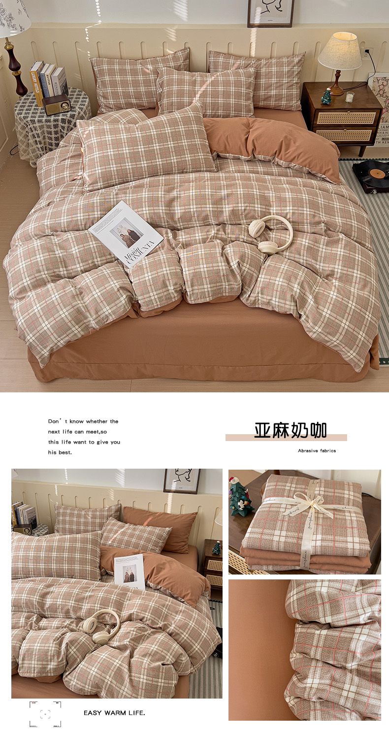 商品名称:金梦拉家纺 2025爆款新款A类加厚有氧针织棉双层纱四件套(吊边版)亚麻奶咖