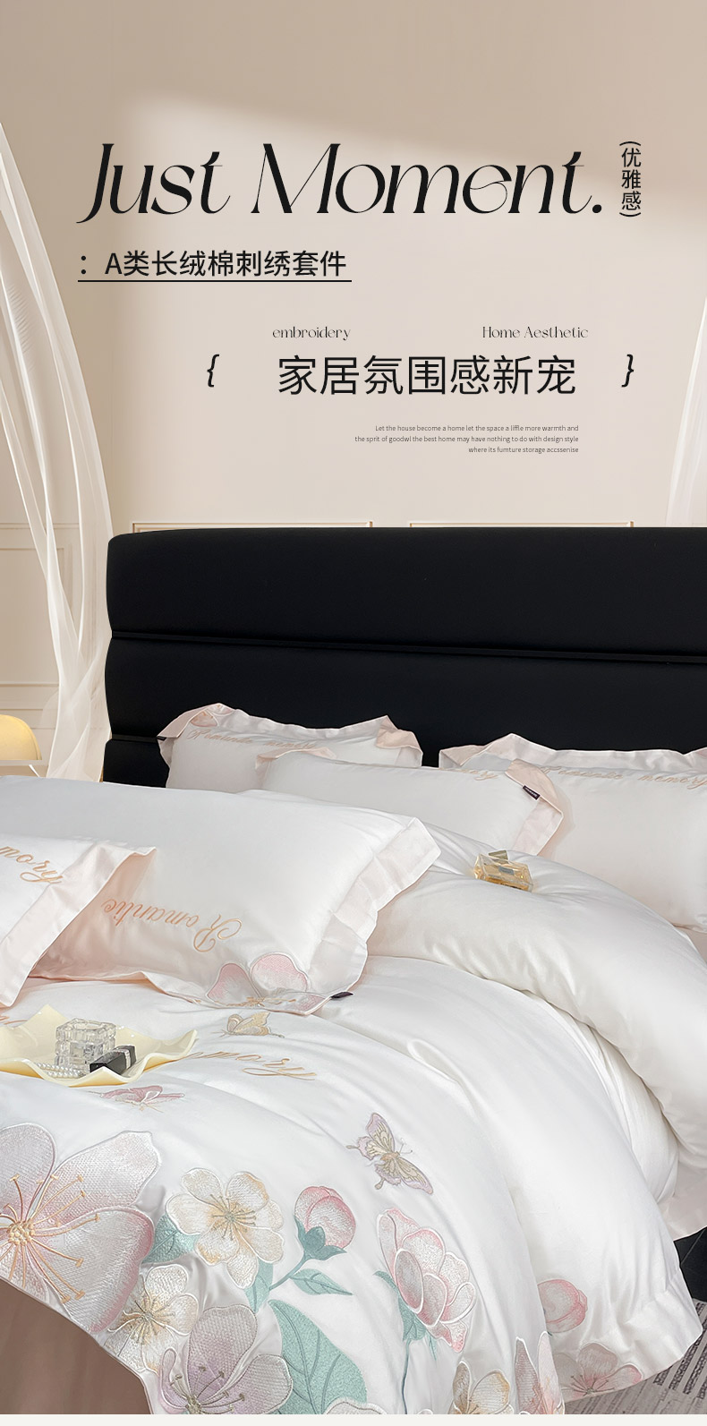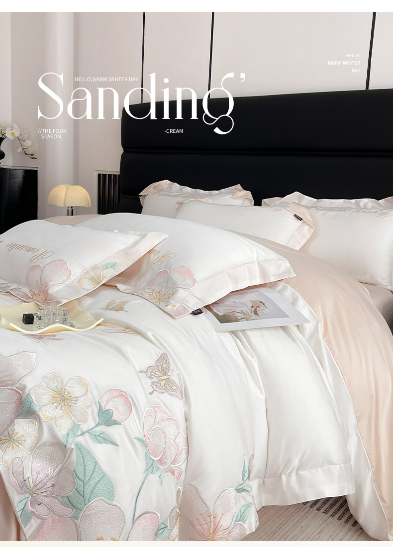 2025春夏A类100支长绒棉四件套纯棉全棉轻奢风床单被套重工刺绣床上用品-花漫屿 花漫屿-白粉