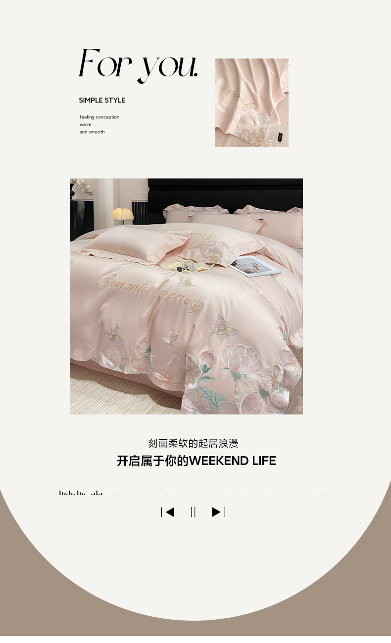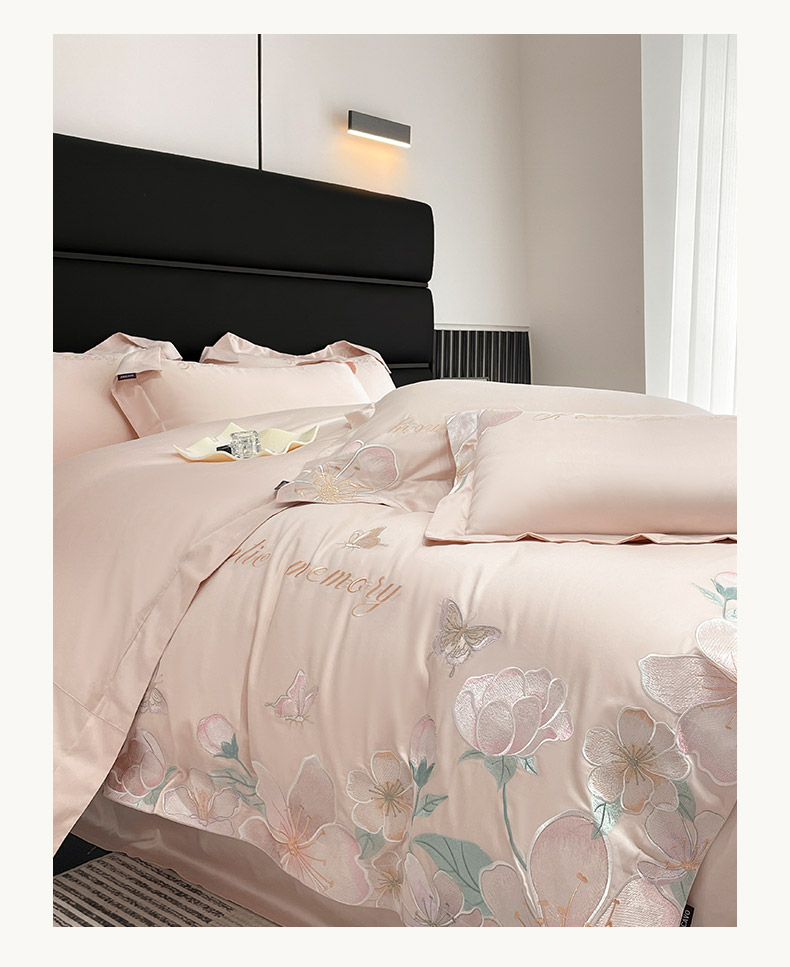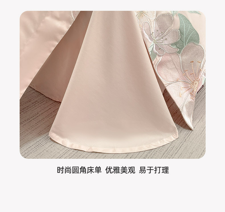 商品名称:2025春夏A类100支长绒棉四件套纯棉全棉轻奢风床单被套重工刺绣床上用品-花漫屿 花漫屿-颜粉