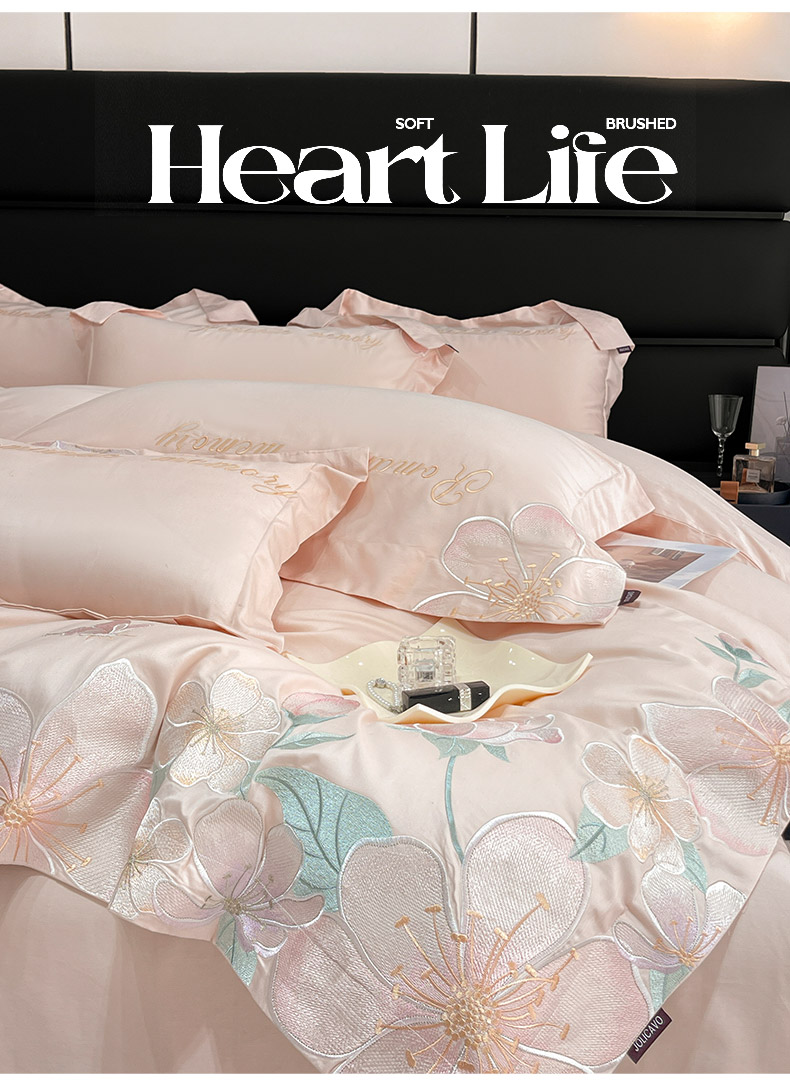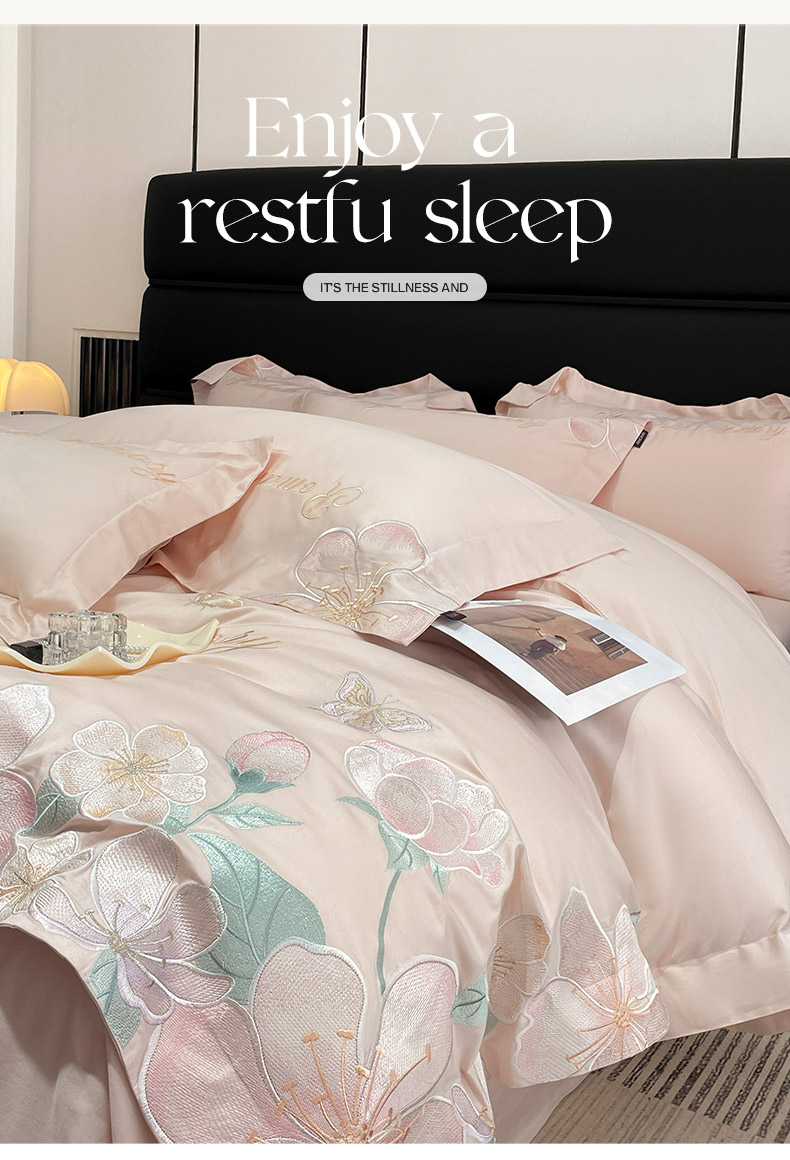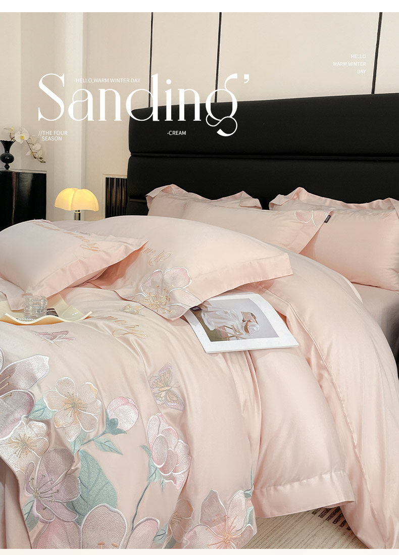 2025春夏A类100支长绒棉四件套纯棉全棉轻奢风床单被套重工刺绣床上用品-花漫屿 花漫屿-颜粉